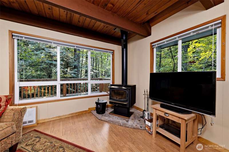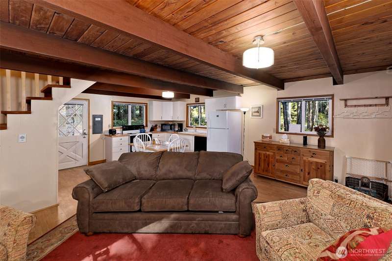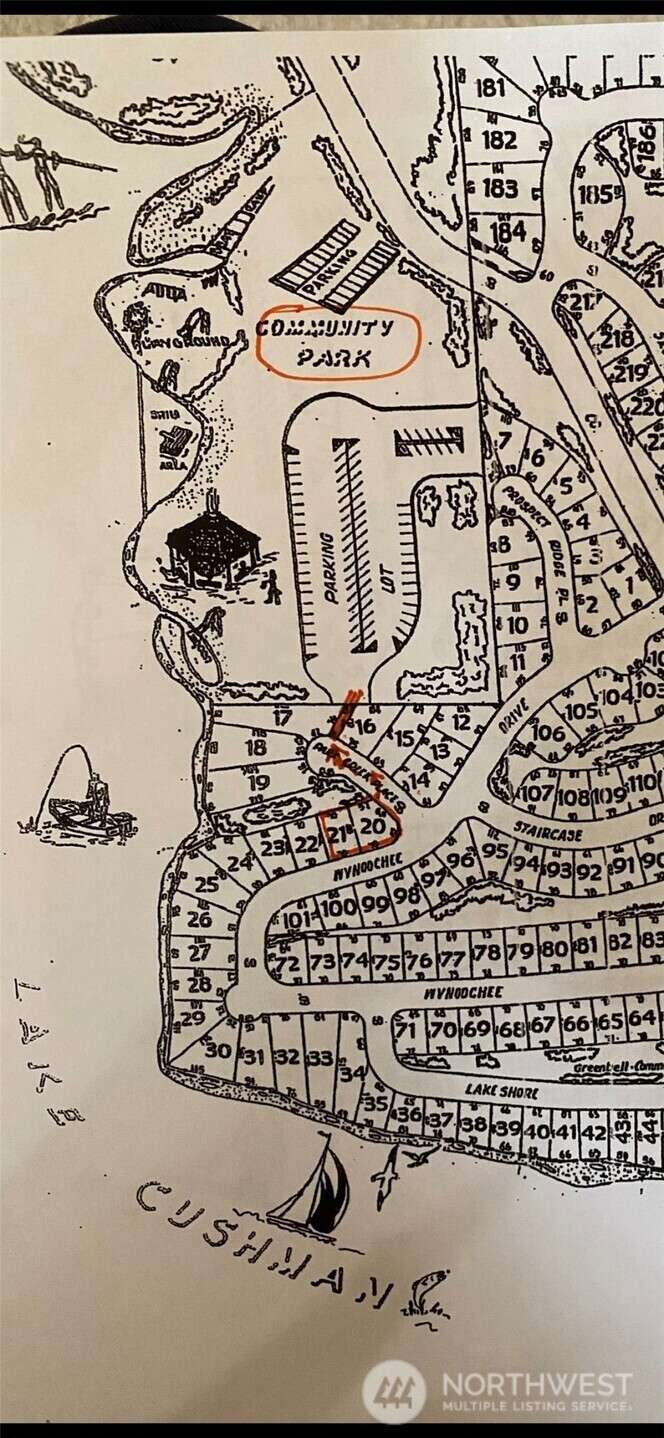 WHOA-TWO corner lots included in this cute as a button cabin!Located in Lake Cushman Pioneer Village Div 1 this lot boasts access to the trailhead to the community beach area steps away! One of if not THE best community beach area w/gazebo, restrooms, moorage, dock & so much more.Step into the PNW open concept cabin to tongue & groove vaulted ceilings,laminate flooring, 3/4 bath, efficient kitchen,dining area & cozy living room w/free standing woodstove.Sliding doors take you out to the large deck overlooking the PNW setting w/a peakaboo view of the lake.Upstairs a large bedroom & 1/2 bath.Excellent opportunity for investment,full time, part time/recreational living-every day is a vacation here. Adjoining cabin (MLS#2413451) also for sale.