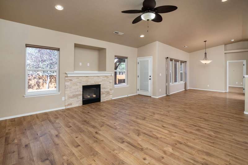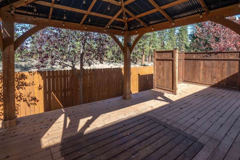 Welcome to this beautifully maintained single-level home offering comfort, privacy, and nature right at your doorstep. Built in 2013, thoughtfully upgraded, 4-bed, 2-bath home spans 2046 sqft on a generous 6098 sqft lot, perfectly positioned just one tax lot away from National Forest land and backing to a privately owned 20-acre parcel, a rare and serene setting. Step inside a spacious great room with a cozy fireplace, seamlessly connecting to a large kitchen featuring an island, breakfast bar, pantry, and ample cabinetry, ideal for gathering and everyday living. The primary suite is located in its own private wing, offering an ultimate retreat with direct access to the rear deck, walk-in closet, double vanity, soaking tub, private commode, and shower. No step raised back deck with gazebo, perfect for enjoying morning coffee or relaxing evenings surrounded by natural beauty. Do not miss this gem!