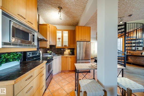 Hecla Lofts! A charming heritage walk-up with only 14 units, offering an authentic loft experience in the heart of downtown. This 3rd-floor open-concept loft/penthouse conversion is the premier unit in the building and showcases exposed brick, unique character, and a striking spiral staircase leading to your private rooftop patio. Enjoy over 500 sq. ft. of exclusive outdoor space with incredible river valley and downtown views—perfect for entertaining on warm summer nights or relaxing in your own private hot tub. Inside, the home features a blend of hardwood and ceramic tile flooring, stainless steel appliances with a built-in microwave, in-suite laundry, and large windows fitted with Shade-O-Matic blinds. The space is wired for surround sound and offers ample art and picture lighting to highlight the loft’s charm. Additional storage is available in the basement. The building is Airbnb friendly, and you’re steps to downtown, the river valley, restaurants, nightlife, and more. A truly unique property!
