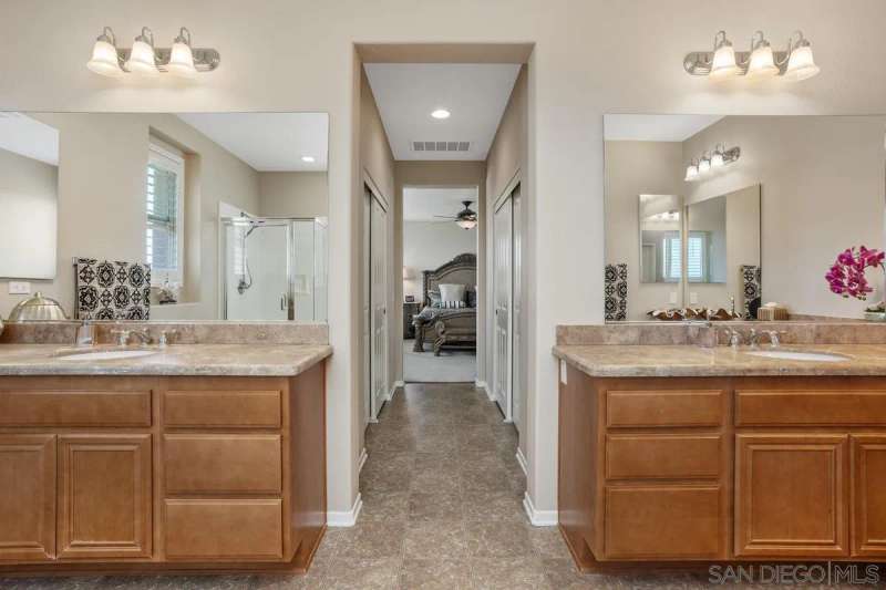 Panoramic Views | No Mello Roos | Arrowood Living: This beautifully maintained 4bd/3ba home with 2,887 sqft of living space is located in the sought-after master-planned community of Arrowood, and offers 180-degree mountain and hillside views. It's an ideal blend of comfort and function. The bright, open floor plan features a spacious kitchen with granite countertops, stainless steel appliances, a large center island, and an extended butler's pantry with ample storage. Plantation shutters, recessed lighting, ceiling fans, and custom built-ins add both style and practicality throughout. Upstairs, the generous bonus room can easily serve as a fourth bedroom, media room, or office. The oversized primary suite offers sweeping views and a large bathroom with dual vanities, a soaking tub, walk-in shower, and separate walk-in closets. Additional features include a tankless water heater, water softener, and central AC. Outside, the professionally designed backyard includes stamped concrete and mature landscaping--perfect for relaxing or entertaining against the scenic backdrop. Enjoy access to the Jr. Olympic swimming pool, Arrowood Golf Course, walking trails, and more. Located in the Bonsall School District and close to parks and shopping. No Mello Roos and low HOA!