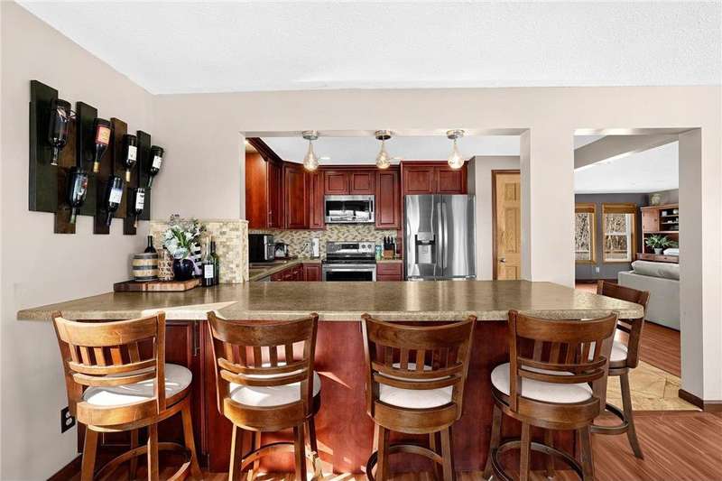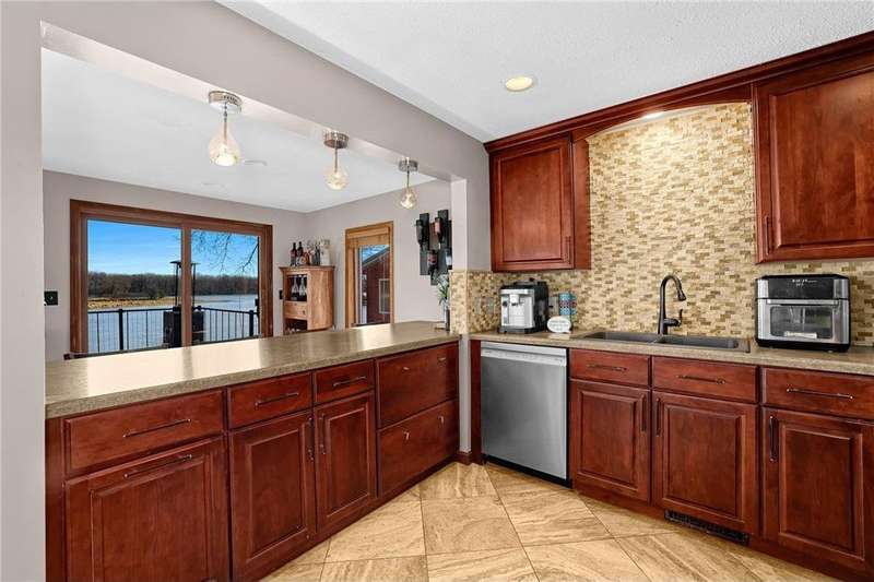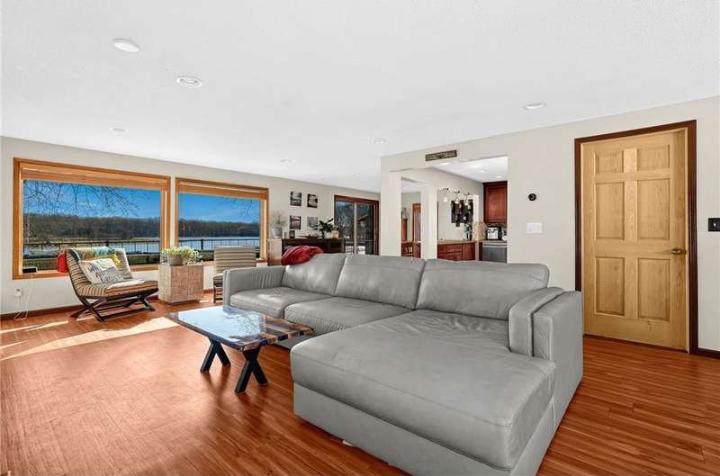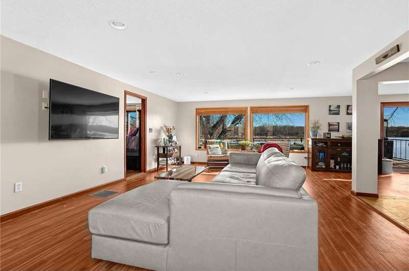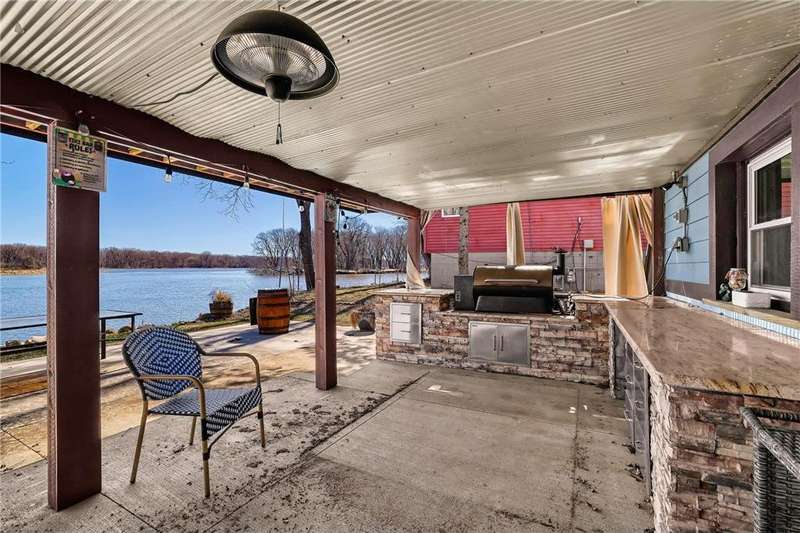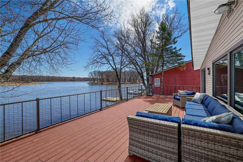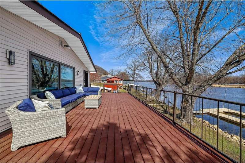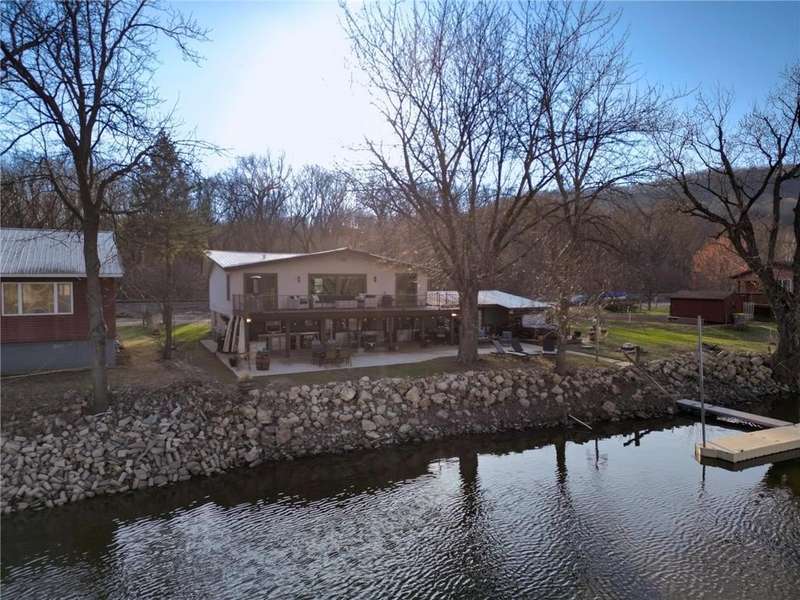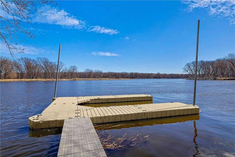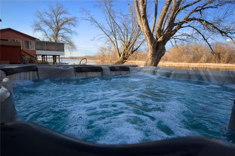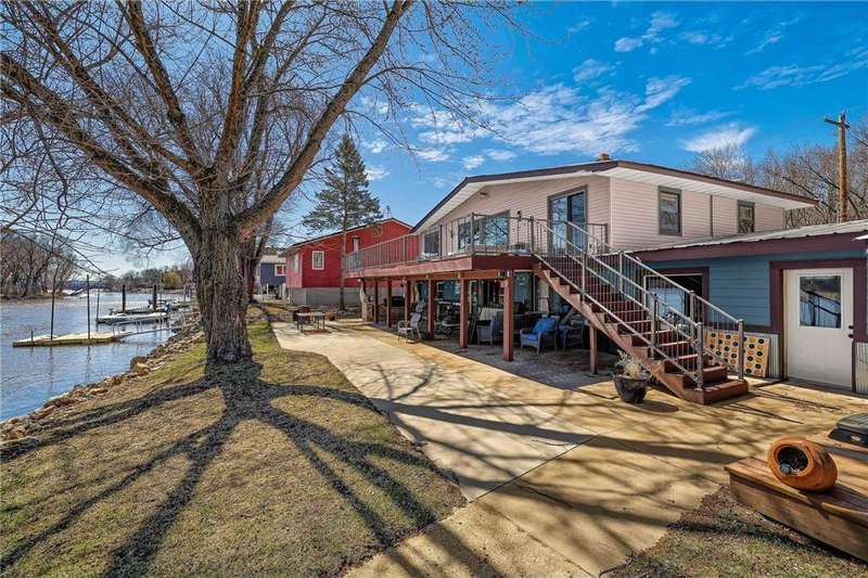 Welcome to your main channel oasis! This raised ranch offers 125 feet of stunning Mississippi River frontage—perfect for water enthusiasts and boaters alike. Enjoy breathtaking views and easy access to the water from your very own new dock installed in 2018.Step inside to an inviting interior, thanks to a 2016 remodel that transformed the kitchen, dining room, living area, two bedrooms, and full bath w/ a stylish walk-in tiled shower, adding a touch of spa-like comfort to your everyday routine. Recent updates include a new furnace (2020) and replacement windows (2023) for improved efficiency and comfort. The backyard is an entertainer's paradise, featuring a 420 sq ft composite deck, outdoor kitchen, spacious patio, cozy firepit, and relaxing hot tub. Adventure awaits!
