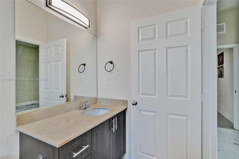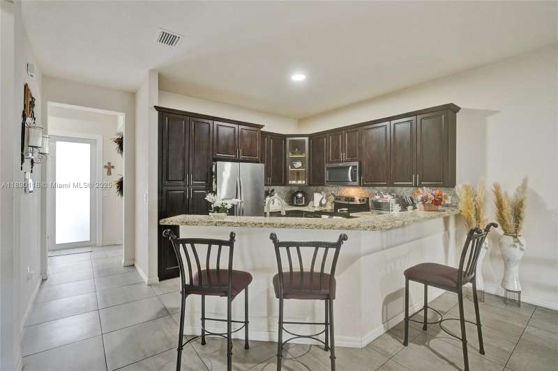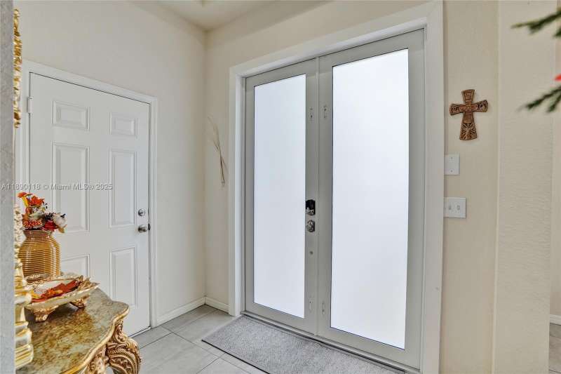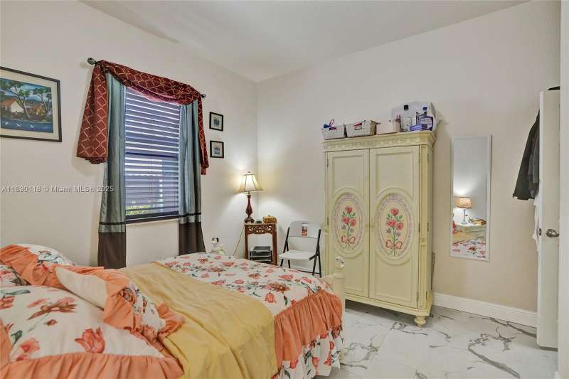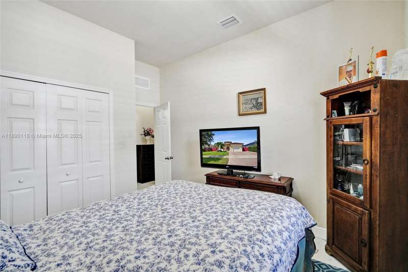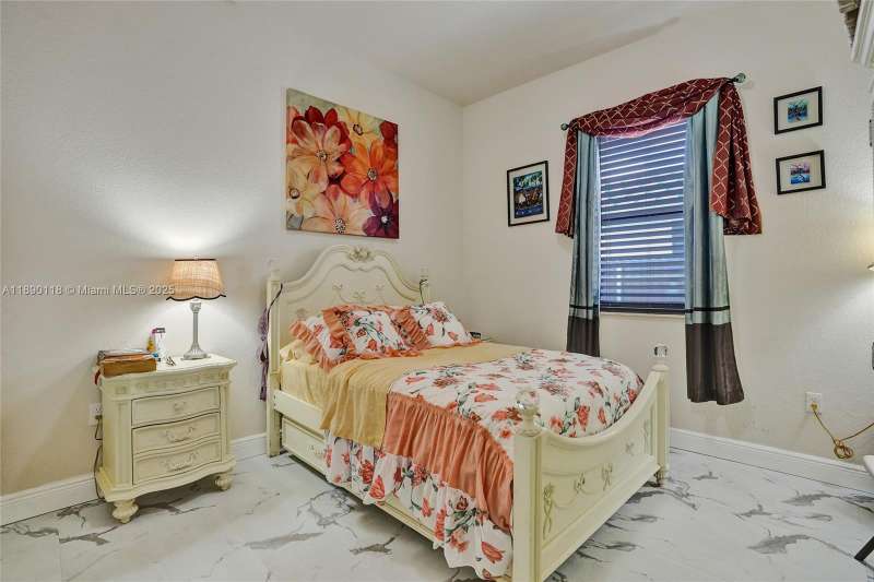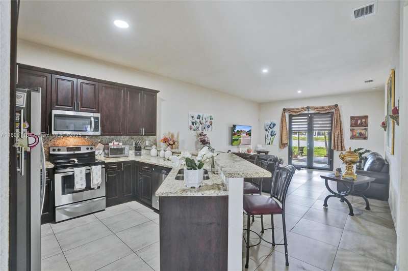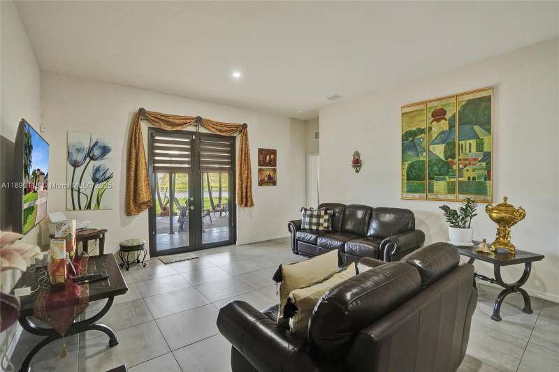 Very charm and cozy three bedrooms and three bathrooms home, built in 2018. Kitchen with stainless steal appliances, granite countertop and 42 inches cabinets and pantry, to provide plenty of space for storage. The house is protected with impact windows and doors. In the back yard under a big terrace with kitchen and TV, you will enjoy the view of a lake with your family and friends. On the sides you have room for a boat or RV. The garage is converted to a guess room with it own bathroom.