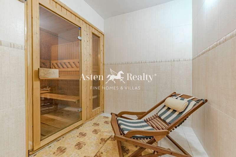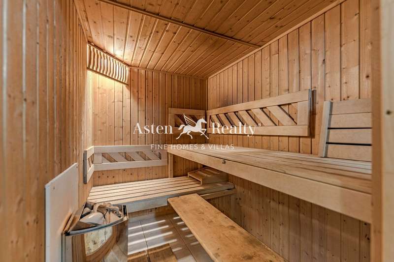 - Private oasis: Immerse yourself in your own personal oasis with a heated swimming pool that invites relaxation and entertainment. The sauna and Jacuzzi overlooking the golf course and sea add a touch of sophistication to this unique experience.