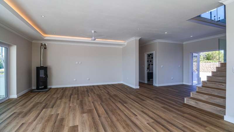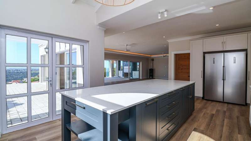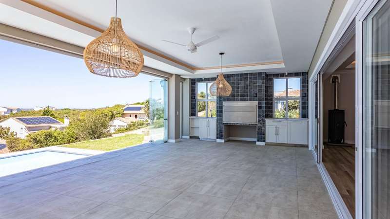 Stunning Sea and Robberg Point Nature Reserve Views!! EXCLUSIVE MANDATE This magnificent, newly completed, dream home is perched almost at the top of the sought-after Schoongezicht Country Estate. The house with the top finishes and particular architectural attention paid to the overall flow of the house, exudes that touch of elegance and exclusivity throughout. An entertainer's dream come true, with a stunning open-plan kitchen flowing over directly into the sea-facing dining room area, adjacent to a spacious lounge area with sea-facing vista as well, and the requisite glassed-in wood burner. The house boasts four bedrooms, four ensuite bathrooms, a separate guest bathroom, and an additional sixth bathroom just off the large laundry cum scullery on the way through to the four equally spacious garages. These are complemented by a partially walled-in and paved parking area for an additional six vehicles. The entertainer-driven and designed, stack glass door enclosed braai cum guest area flows out from the formal lounge area and leads directly out onto the fabulous, sea-facing swimming pool and further good time areas. This very rare gem offers so much more and then some to the true connoisseur wishing for that something really special. Please contact Anton to arrange for an appointment to view.