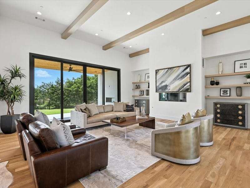 Welcome Home to this brand new, gorgeous Calais Custom Home. Nestled in the quiet, back part of the prestigeous Old Grove neighborhood, this modern home offers an unparalleled living experience, exceptional floor plan, light and bright finishes and a spacious backyard for you to create your backyard dream oasis. As you enter the impressive steel and glass pivot front door, you are greeted with 21 foot soaring ceilings, walls of windows, gorgeous wood floors and open plan living. Blending luxurious finishes with modern design, this home features highest end Wolf and Subzero appliances, stone countertops, designed hardware and plumbing fixtures, and white oak floors. The open-concept offers a large Family - Breakfast - Chef's Kitchen with huge island with quartizite counters, for family and friends to enjoy. Step into the Game Room with wet bar with sliding doors to the oversized backyard, covered patio and serene views.The dream Primary Retreat features lovely backyard view, a lavish spa bath and expansive closet. 2nd Primary suite is also downstairs. Upstairs offers 3 large Bedrooms with en-suites and walk-in closets, plus a Exercise Room, Loft and Bonus space. As you head into the backyard, you find a large veranda, complete with a with cozy fireplace for year-round enjoyment, and surrounded by exquisite landscaping and mature trees that enhances the home's secluded ambiance. Home also boasts an Executive Study, Prep Kitchen, large Laundry room, tons of storage, a spacious 4 car garage. This is a truly extraordinary residence, and a rare combination of privacy, elegance, and functionality.