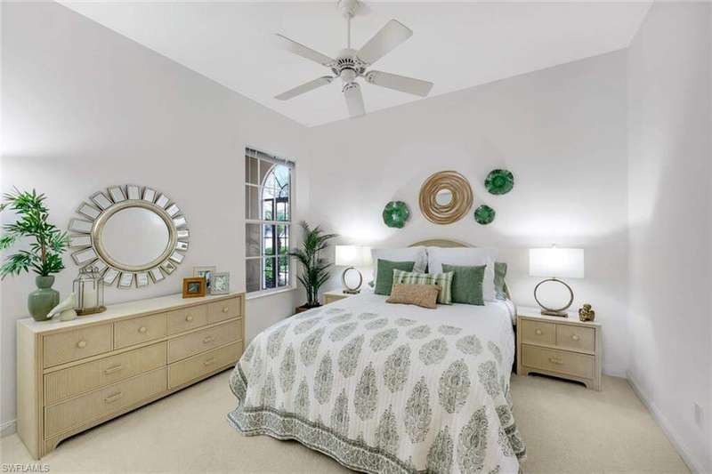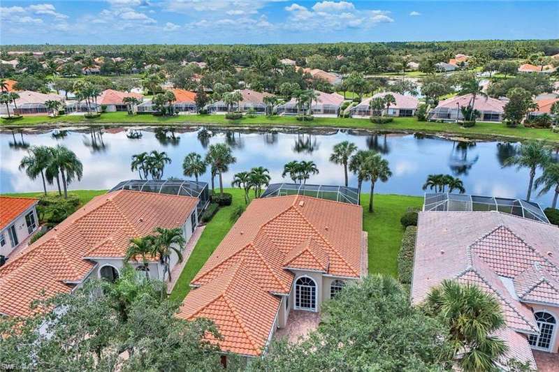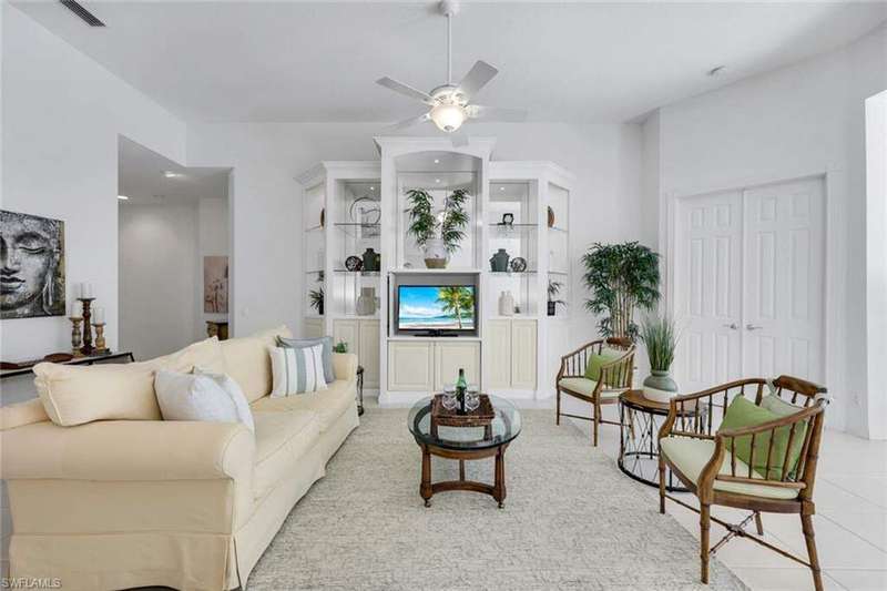 This is the one you've been waiting for! The sought-after Extended Oakmont model in Island Walk offers 2,181 sq. ft. of stylish, low-maintenance living that checks all the boxes. Enjoy peace of mind in this barely-lived-in poured concrete DiVosta home with a new AC (2024), newer roof (2022), newer pool heater (2022), and relax by your private pool overlooking a western-facing lake view-the perfect backdrop for Naples sunsets. Inside, you'll find freshly painted interiors, soaring ceilings, 3 bedrooms plus a cozy den with beautiful built-in office, and 2.5 baths, along with a side-load 2-car garage with refinished flooring. Step outside and you're just minutes from the vibrant Island Walk Town Center with its recently renovated clubhouse (no special assessments!), lap-and resort-style pools, tennis, pickleball, bocce, fitness center, award winning restaurant, gas station, car wash, post office, and salon services. Basic cable, WiFi, lawn care, irrigation water and exterior pest control are all included in your HOA for easy living. Best of all, you're just a short drive to world-class shopping, dining, and the white-sand beaches of Naples.