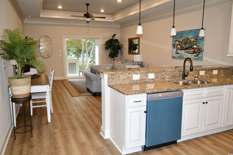 Welcome to SunnySide Village. We are excited to offer you the opportunity to own this one story 3 bedroom / 2 bath condo with garage. High end finishes include granite countertops, hardwood floors in the living areas, stainless steel appliances and much more. The community includes a pool and beautiful coastal landscaping. The Marsh Walk is just a golf cart drive away. Located in the heart of Murrells Inlet. This historic village is known for world class fresh seafood, fishing, water sports, shopping and a laidback lifestyle. Stroll and dine the Marsh walk. Enjoy the beautiful nature, zoo and sculptures of BrookGreen Gardens. Charleston the number one destination city in the country is only an hour and a half away. Go fishing in the marsh or charter a boat captain to go offshore and catch "the Big One." Furnished and finished exterior pictures are from a prior built townhome with the same floorpan. All measurements and dimensions are deemed approximate. It is the responsibility of the Buyer to confirm. The builder reserves the right to change prices, specifications, terms and availability without prior notice. Furniture package is available for an additional price.