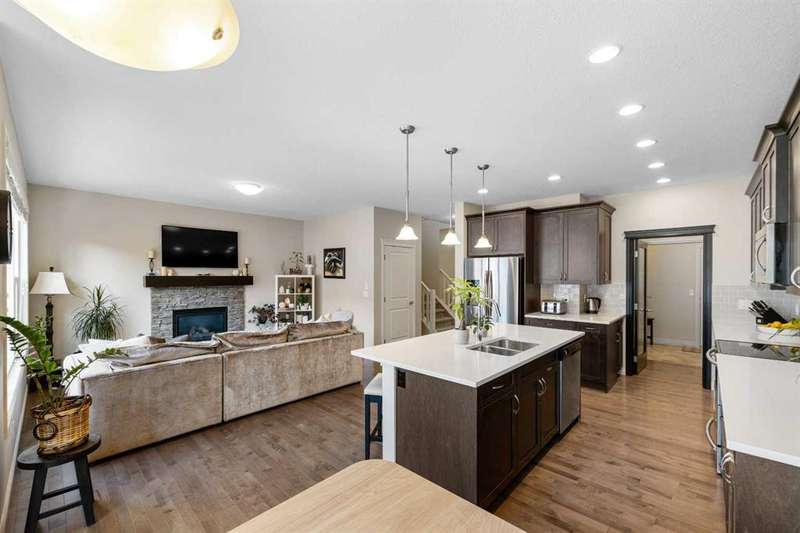 Flow + energy + style + upgrades = a happy Life! One visit to this home and you will fall in love. Located on a quiet street with ample parking, this home is close in proximity to multiple schools, shopping, transit, and much more. Boasting 4 bedrooms + 3.5 baths, this fully finished property has all the space you need to grow and thrive. Packed with all the features you'd come to expect it offers its next owner great value and peace of mind. Step Inside and you will see the main floor is bright and welcoming. Enjoy your ideal foyer, separate mudroom, well placed half bath, and a spacious living room with a warm fireplace. Your favorite room, the kitchen, boasts unique wrap-around cabinetry and timeless quartz countertops. Expansive is the word best used to describe the cabinetry and dining, as this home has plenty of room for large get togethers. You will notice the extra cabinets for your resident chef's needs, stainless steel appliances, and a useful walk-through pantry. This kitchen was designed for style and convenience and will make you proud to entertain. Upstairs, the primary bedroom is spacious, bright, and offers a true retreat ensuite with dual under-mount sinks beneath quartz countertop, a soaker tub separate from the stand-up shower, and a large walk-in closet. Also found on the second floor are two additional bedrooms each generously sized with one having its own walk-in closet. The upper floor also boasts a spacious five-piece bathroom with dual sinks and quartz counters, dedicated laundry room, plus a fantastic bonus room for family movie nights that doubles as a great games room. Venture downstairs to the fully finished basement well appointed with high ceilings, a full bathroom, bedroom, living room with wet bar, and lots of storage! This home is packed with additional features you will love. Stay comfortable in the warmer months thanks to central A/C and relax in your very own custom-built sauna. Out front enjoy the double attached garage with ample room for storage and out back you cannot miss the expansive two-tiered deck and beautifully landscaped yard which are perfect for summer BBQs and backyard fun. Every detail in this home has been thoughtfully crafted from top to bottom. It’s the perfect mix of style, function, and comfort. Don’t miss out—this home is what you have been waiting for, it offers incredible value and is ready for its next proud owner. Will it be you?