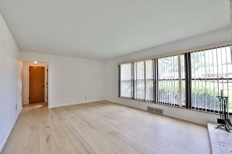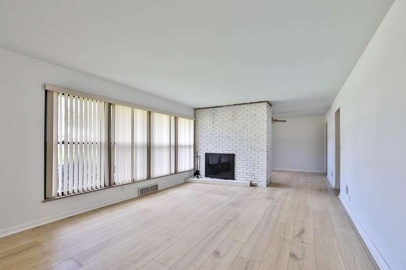 Back on Market due to Buyer Financing. Don't miss this stylish mid century modern vibes ranch featuring sleek floors, brick fireplace and a contemporary feel. Roof 2020, HVAC 2006, New Flooring and Newly remodeled bathroom. Situated on a spacious corner lot, this home boasts a brand-new beautifully crafted fence for added privacy and curb appeal. Enjoy the benefits of a large versatile basement, perfect for a home gym, storage or extra living space. Located in a fantastic neighborhood close to shopping, dining, parks and major highways. A great opportunity for stylish comfortable living in a convenient location. Home is being sold AS-IS.