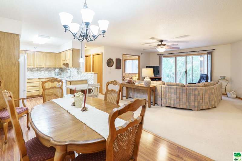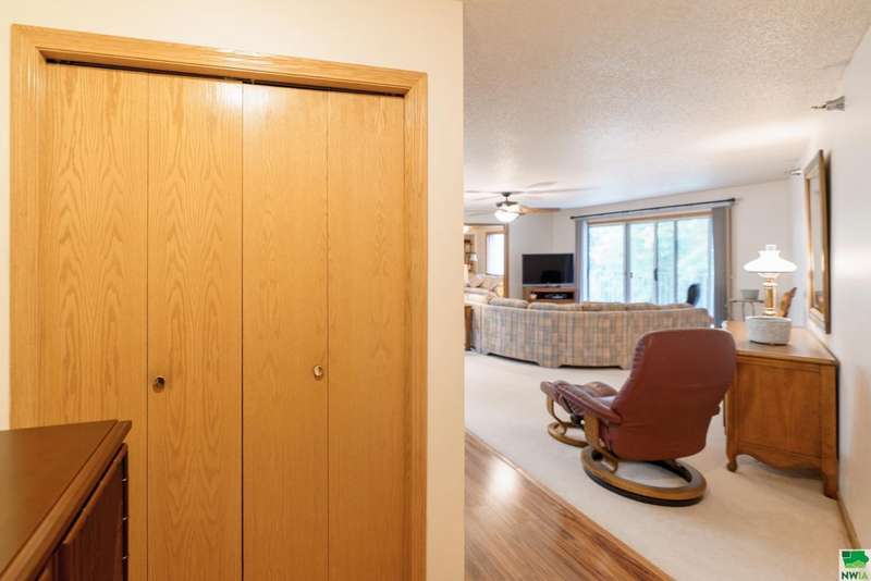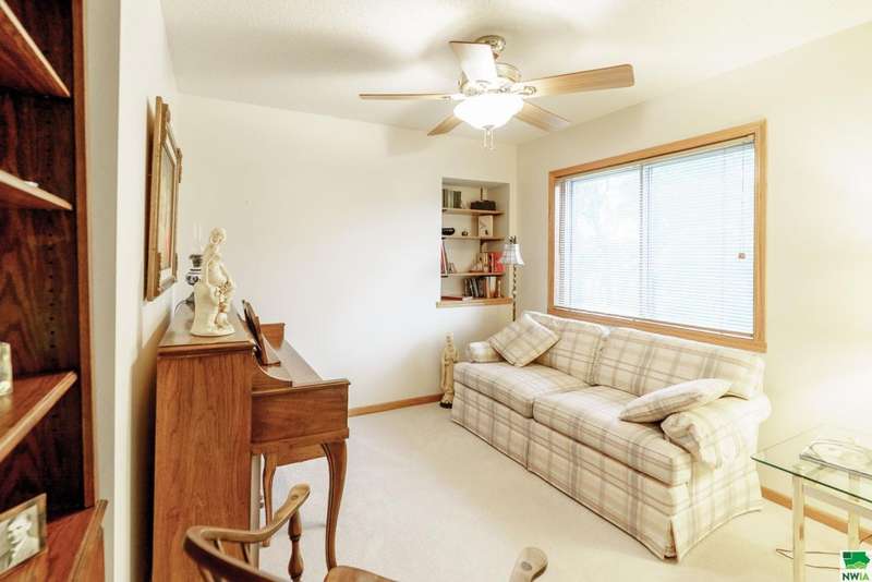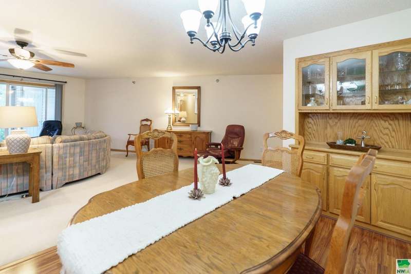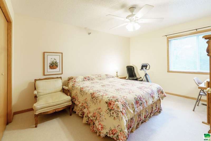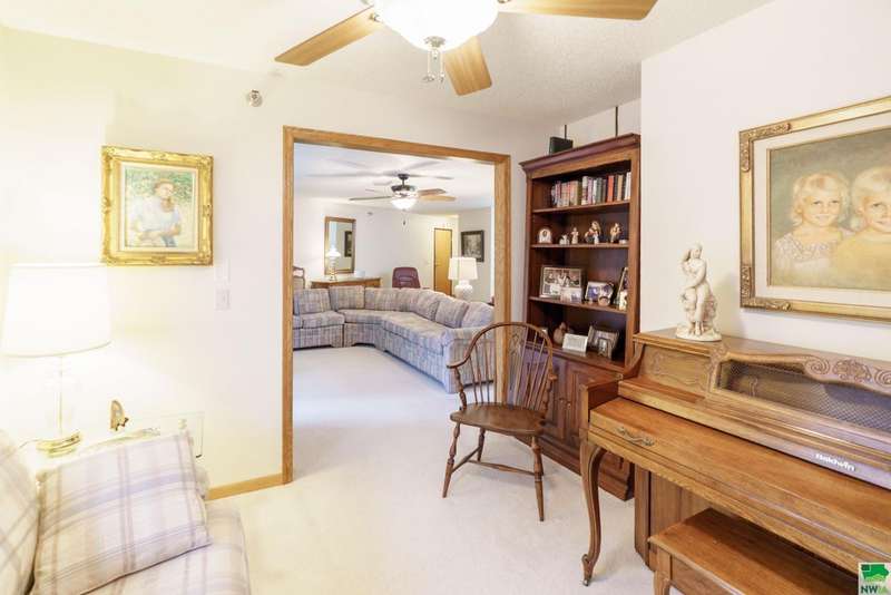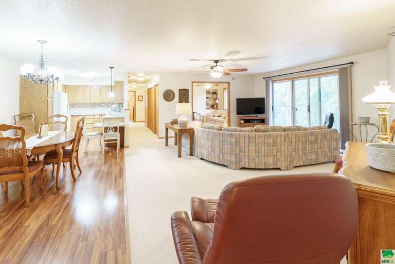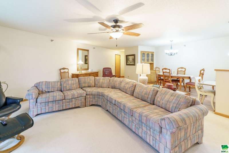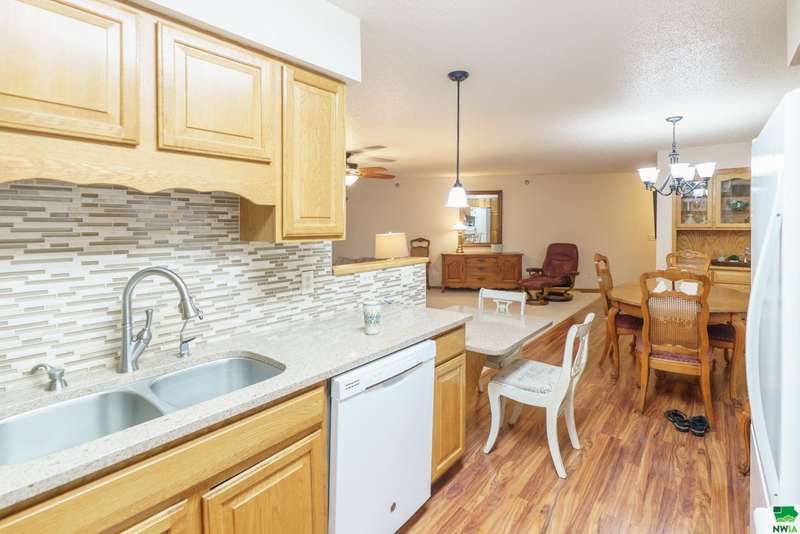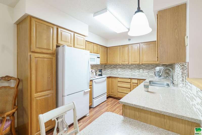 Welcome to this spacious two-bedroom, two-bathroom 55+ condo offering comfort, convenience, and plenty of extras. Inside, youll find a bright kitchen with quartz countertops and oak cabinetry perfect for keeping things organized. The dining area features easy-care laminate flooring, and built-in hutch-style storage?while the adjacent living room is warm and inviting. Off the living space is a den that could easily serve as a home office, craft space, or even a possible third bedroom. The primary suite (12 x 16) includes two double closets and a private en-suite with a walk-in shower, while the second full bathroom features a one-piece shower\tub combo. Laundry is located right in the unit, tucked conveniently into the hallway. Additional perks include a concrete deck for relaxing outdoors, a two-stall garage on the main (ground) level, and a separate storage room with built-in shelving. The condo association fee is currently $300\month (set to become $350 in January) and covers the water bill along with standard association amenities. This is low-maintenance living at its best?plenty of space, smart storage, and the convenience of condo living in a great location. The sellers have hired Suter to service the HVAC over the years so that is well maintained, and this condo offers peace of mind. You can lock the door, turn off the water and head to your tropical destination!!!!