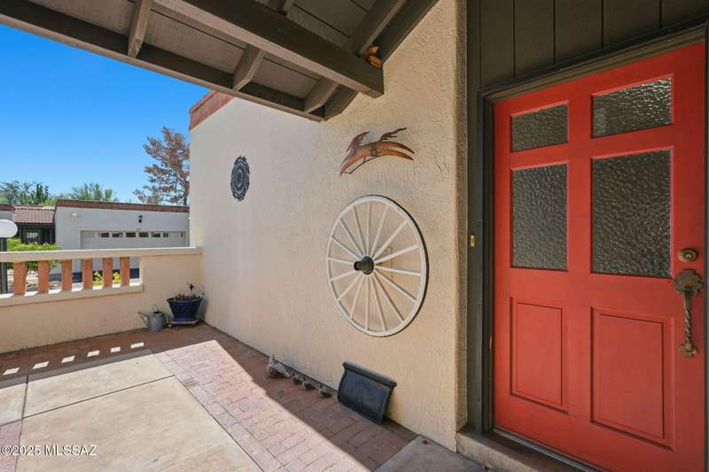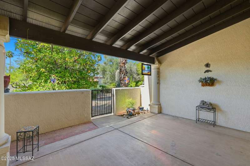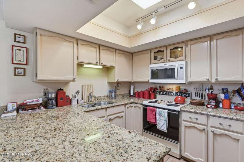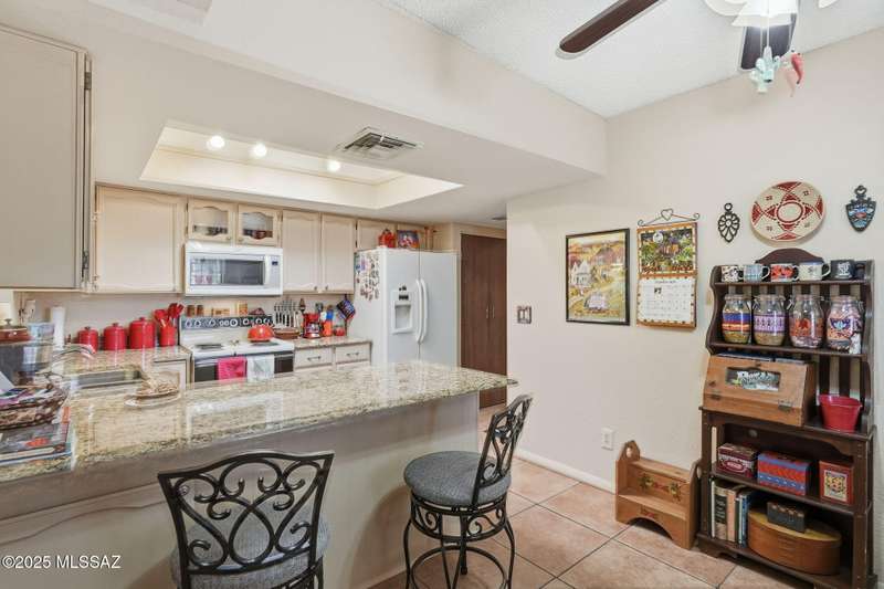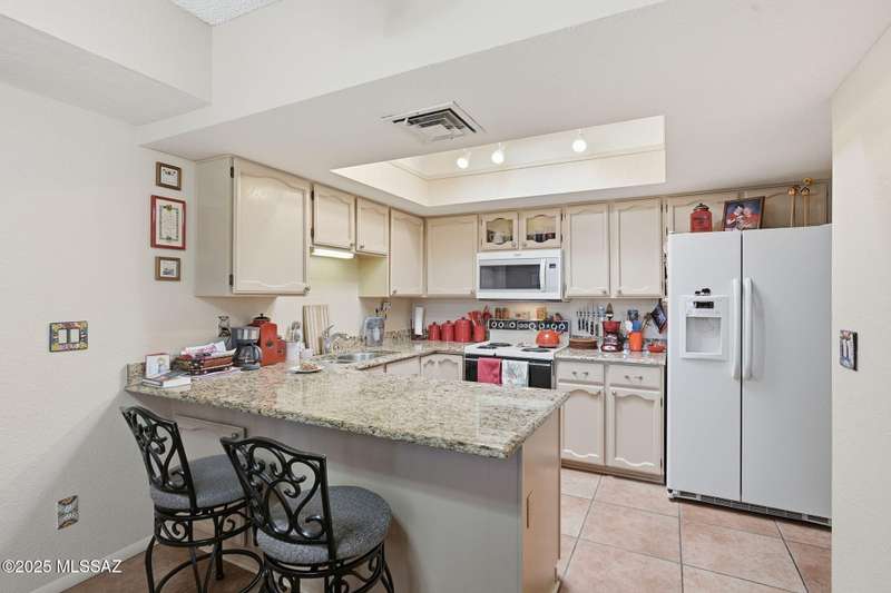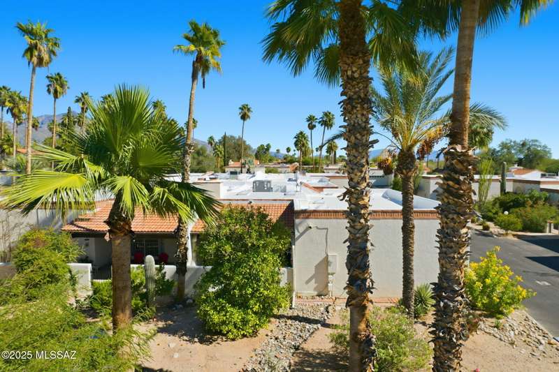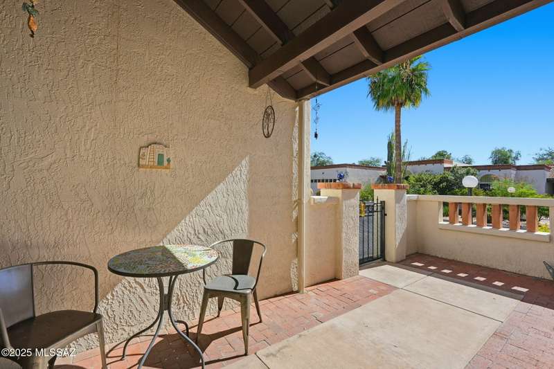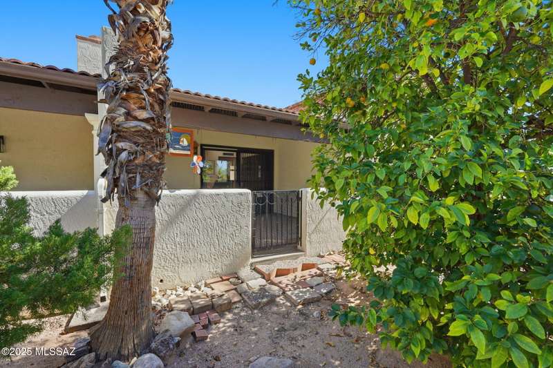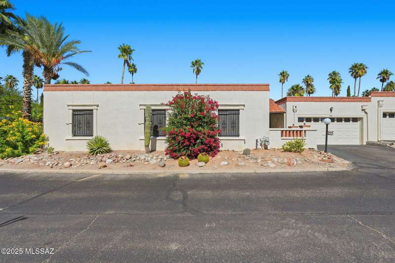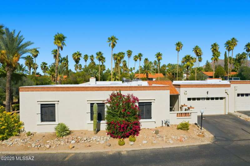 A true hidden gem in the heart of Tucson at the highly sought-after Sonoran Palms Townhome community. This 3 bedroom, 2 bath townhome offers privacy with no neighbors along the west side. Step inside to find an inviting living room hosting a charming wood burning fireplace & direct access to a covered patio--perfect for relaxing or entertaining. Adjacent dining area provides plenty of space for gatherings & meals with family & friends. Additional standout features include eat-at bar in kitchen, beautiful quartz counter tops, 2-car garage with a built-in workshop area plus washer & dryer convey with the sale. This home truly has charm convenience & in a cherished location. HOA covers trash, termite, common areas, streets & landscaping out side walled patio! Your gonna love it - tour today!