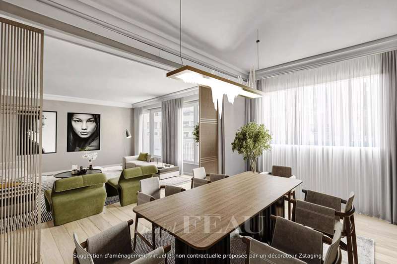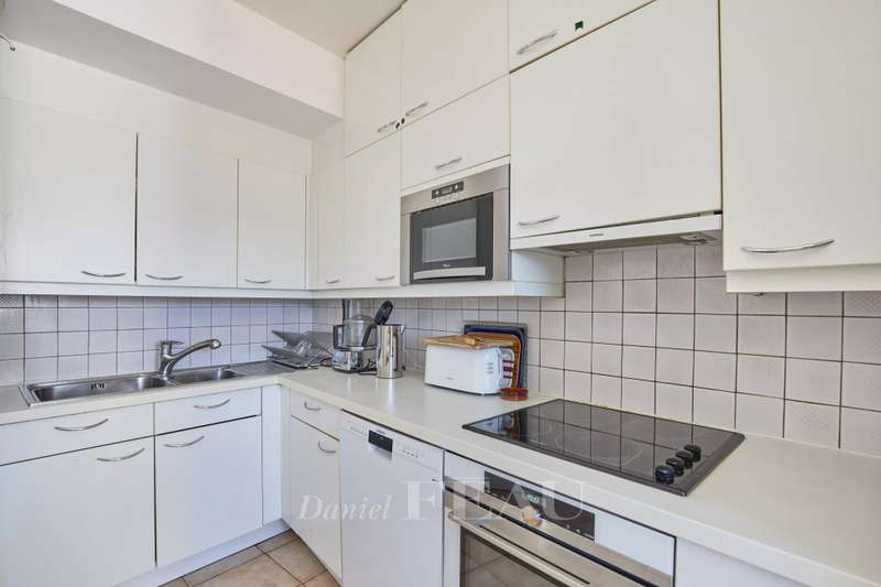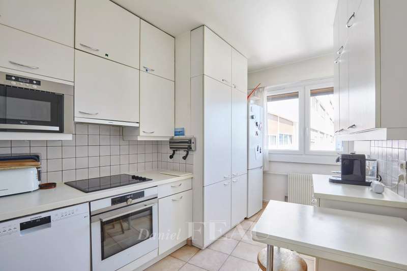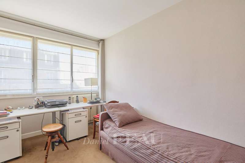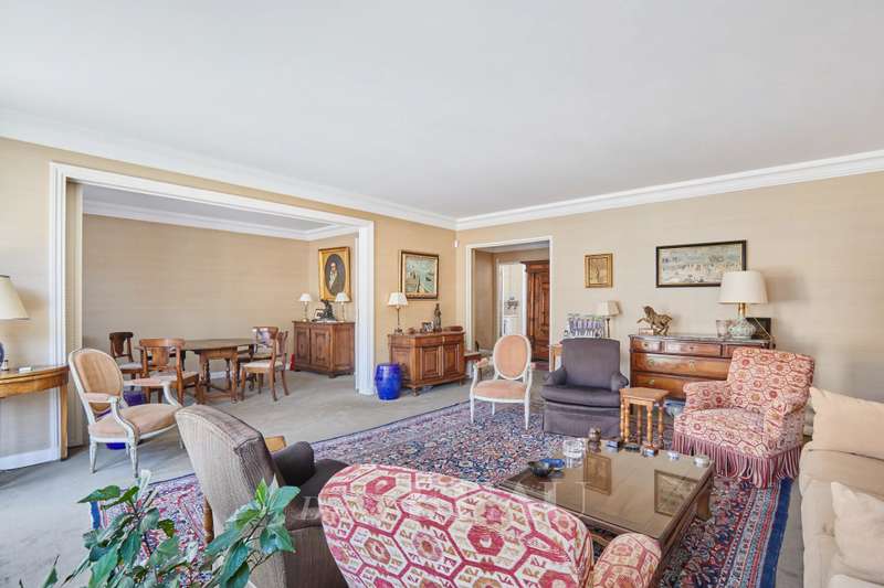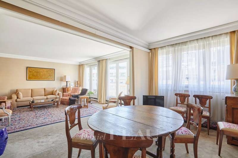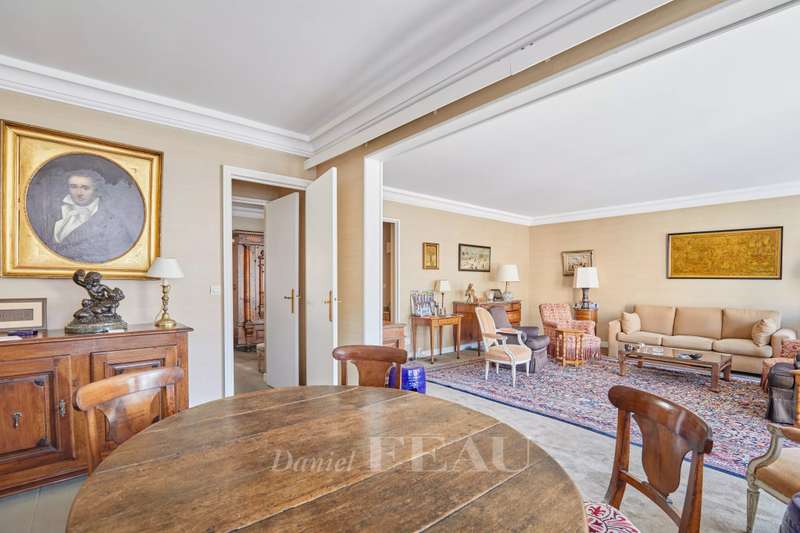 Sole Agent. Auteuil South, Exelmans neighbourhood. This bright 128 sqm family apartment is on the 6th floor of a well-maintained mid 20th century building. It includes a double living/reception room opening onto a wide continuous balcony, a dining room, a kitchen with a pantry and a utility area, three bedrooms one with a bathroom, a shower room/wc and a separate wc. The dining room could create a 4th bedroom if possible. Ample fitted storage space. With a cellar. A parking space in the building may be acquired.