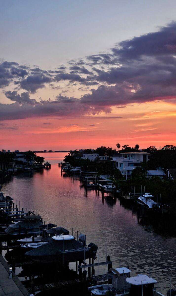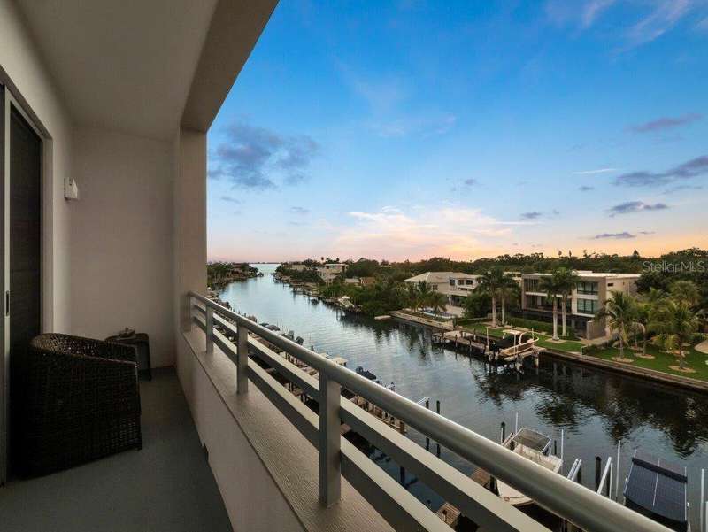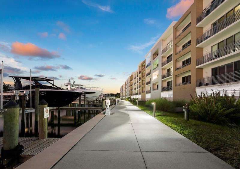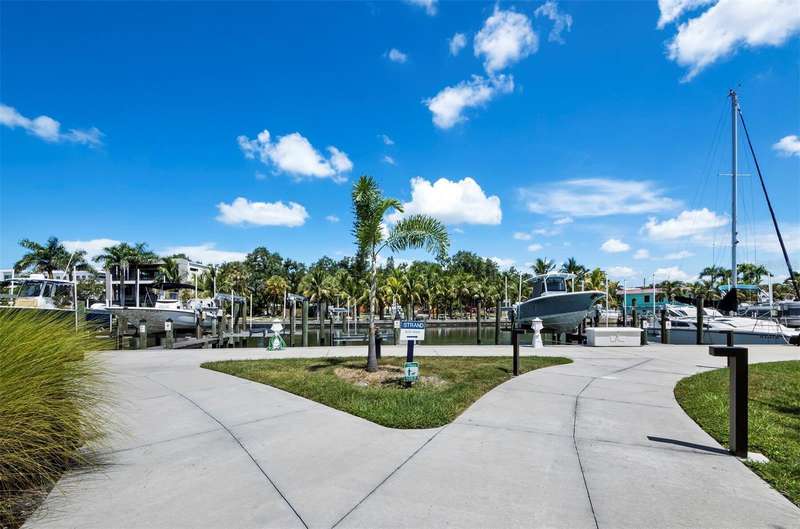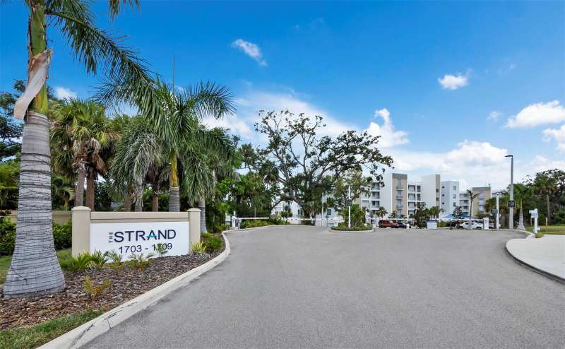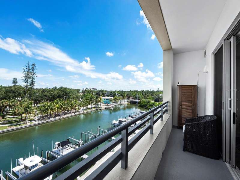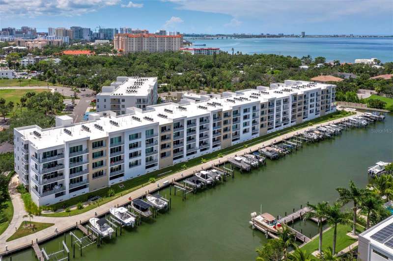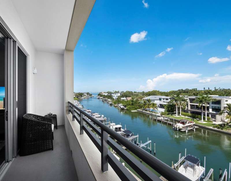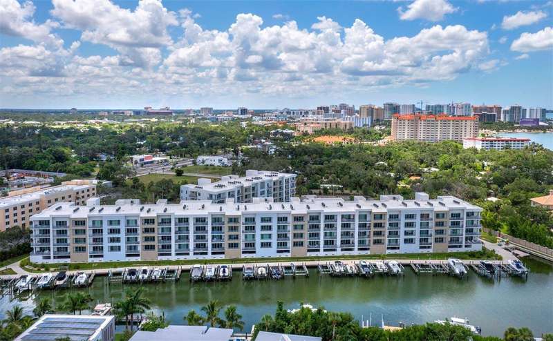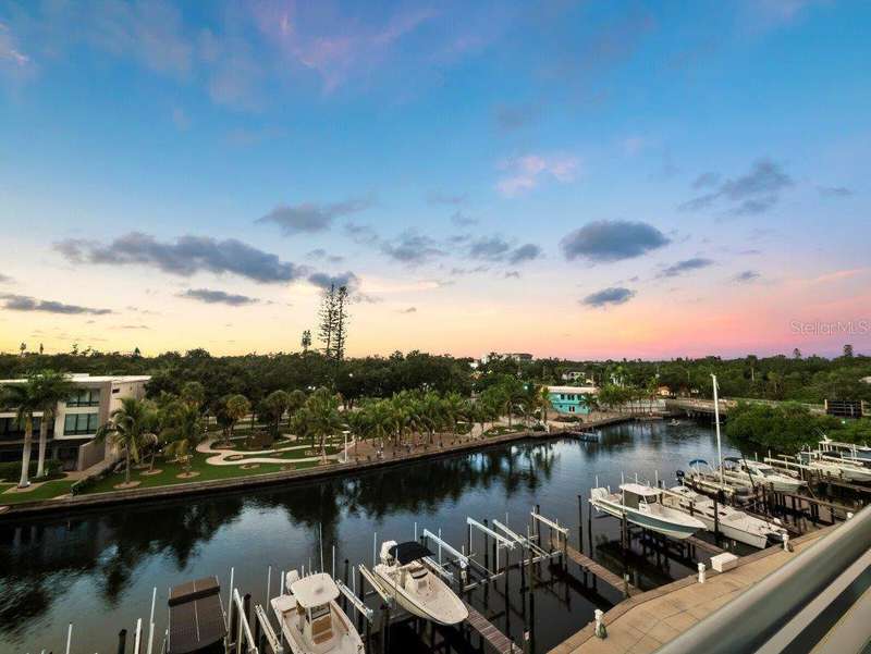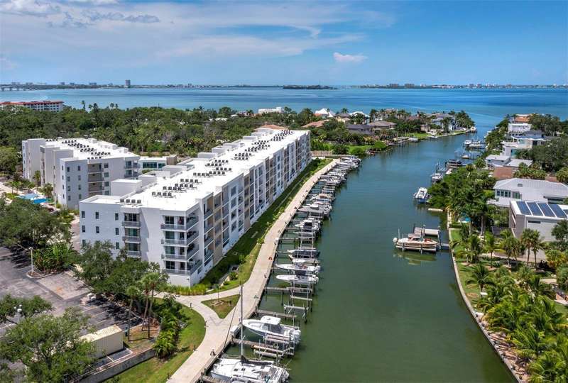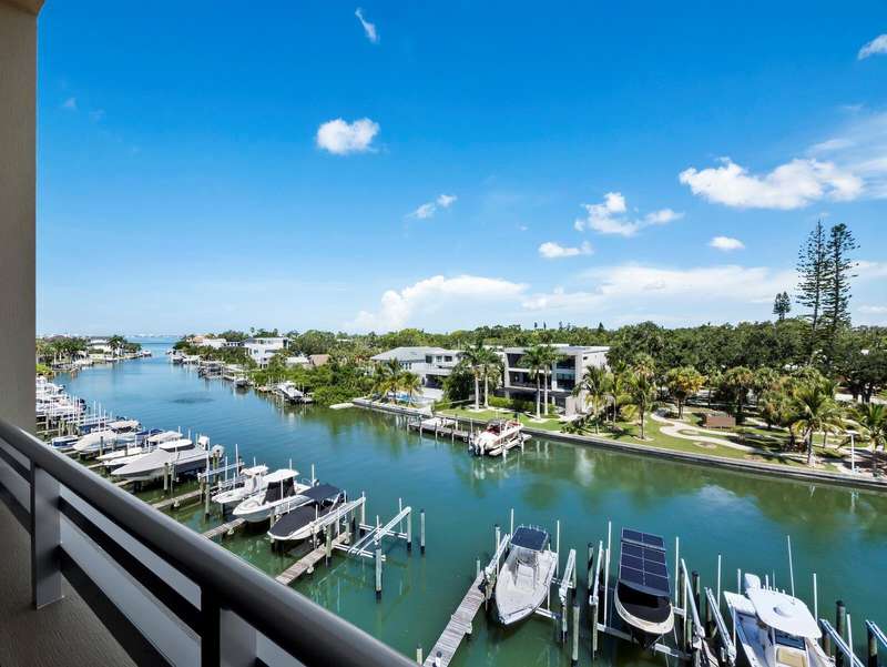 WATERFRONT TURNKEY FURNISHED PENTHOUSE WITH NIGHTLY SUNSET VIEWS, BOAT LIFT AND BOAT Experience waterfront luxury at The Strand of Sarasota. Rarely lived in and never rented, this Penthouse, newer (2022) turnkey-furnished home includes a deeded boat slip with a 10,000 pound Neptune lift with connected water and electricity, a fully equipped 2023 Scout 177 Sport flats fishing boat, and a kayak for one price. Direct boating access to Sarasota Bay and the Gulf of Mexico. Located on the fifth floor, the residence features two full bathrooms and a versatile den with barn doors, complete with a custom wall bed and California Closets built-ins easily utilized as a second bedroom. Unmatched upgrades throughout include luxury vinyl plank flooring, glossy cabinetry, quartz countertops, kitchen tile backsplash, Samsung appliances, flat-screen TV, and designer light fixtures from Herman Miller and West Elm. Nine-foot impact rated sliding glass doors fill the great room with natural light and open to a private terrace with stunning sunset views of the canal and Sarasota Bay. A floor-to-ceiling vertical cellular shade provides privacy when needed. The primary bedroom includes a spacious walk-in closet with custom built-ins by California Closets. The boat lift, installed using 10" diameter wrapped pilings punched 10 feet deep and warrantied by Duncan Seawall, Dock and Boat Lift, ensures lasting quality and peace of mind. Residents of The Strand enjoy resort-style amenities including a heated swimming pool and spa, fitness center, gas fire pit and grills, EV charging stations, dog park, and kayak launch with storage. Just minutes from Sarasota vibrant arts, culture, dining, and the new bayfront entertainment area, The Strand offers an ideal setting for a full-time residence, vacation getaway, or investment property, with weekly rentals permitted.