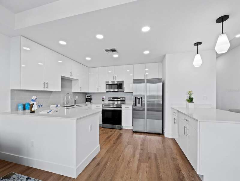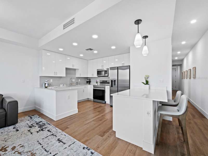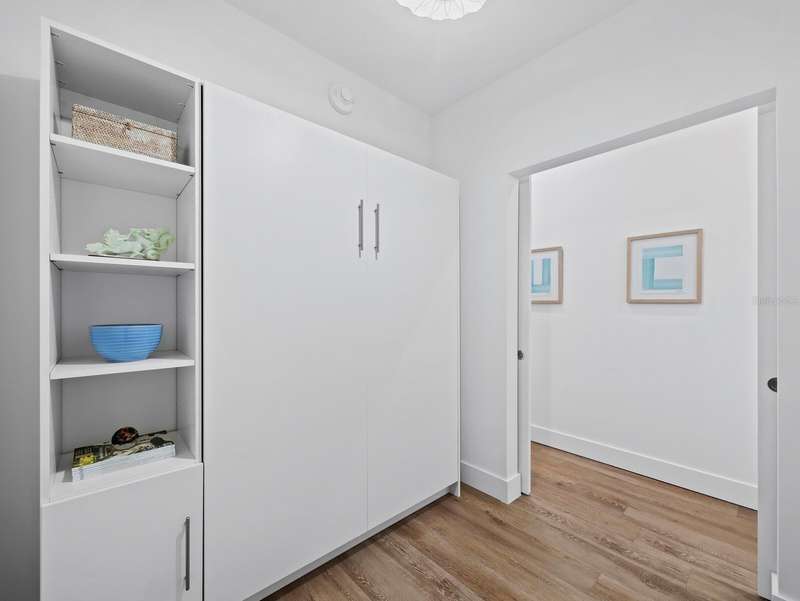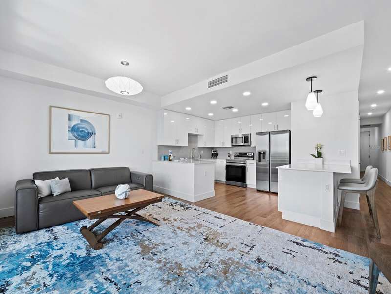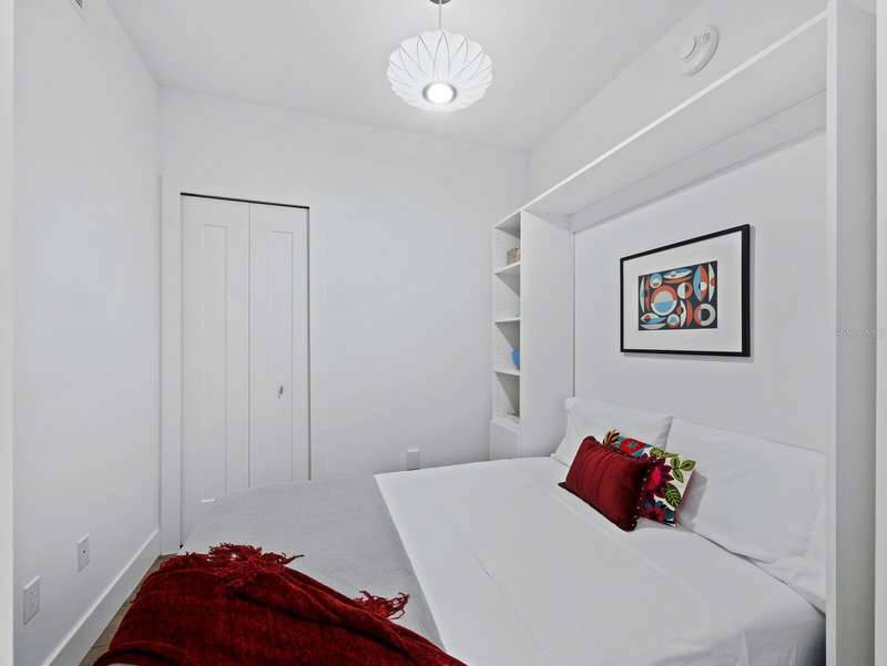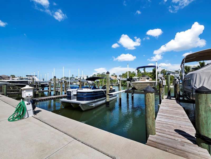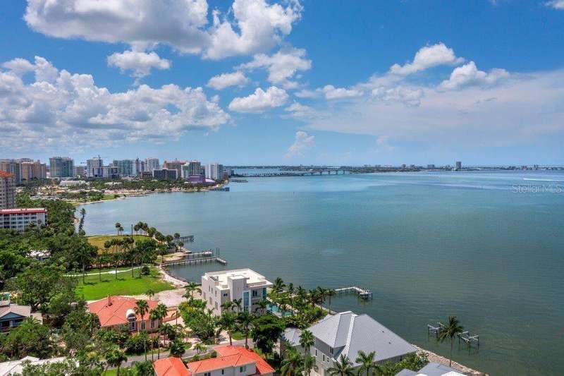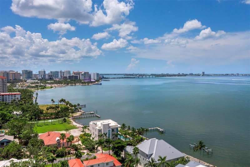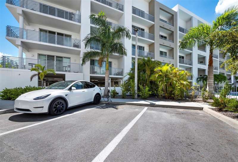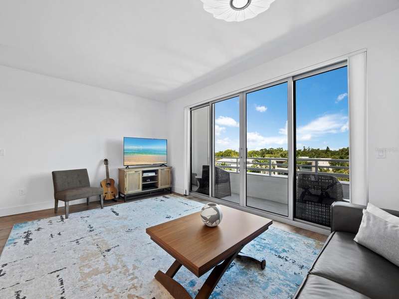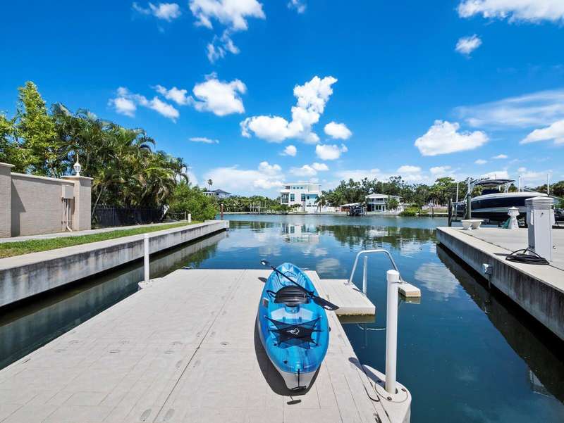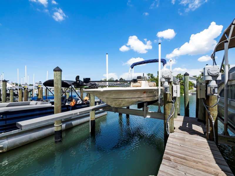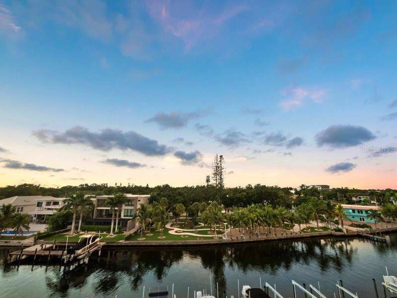 WATERFRONT TURNKEY FURNISHED PENTHOUSE WITH NIGHTLY SUNSET VIEWS, BOAT LIFT AND BOAT Experience waterfront luxury at The Strand of Sarasota. Rarely lived in and never rented, this Penthouse, newer (2022) turnkey-furnished home includes a deeded boat slip with a 10,000 pound Neptune lift with connected water and electricity, a fully equipped 2023 Scout 177 Sport flats fishing boat, and a kayak for one price. Direct boating access to Sarasota Bay and the Gulf of Mexico. Located on the fifth floor, the residence features two full bathrooms and a versatile den with barn doors, complete with a custom wall bed and California Closets built-ins easily utilized as a second bedroom. Unmatched upgrades throughout include luxury vinyl plank flooring, glossy cabinetry, quartz countertops, kitchen tile backsplash, Samsung appliances, flat-screen TV, and designer light fixtures from Herman Miller and West Elm. Nine-foot impact rated sliding glass doors fill the great room with natural light and open to a private terrace with stunning sunset views of the canal and Sarasota Bay. A floor-to-ceiling vertical cellular shade provides privacy when needed. The primary bedroom includes a spacious walk-in closet with custom built-ins by California Closets. The boat lift, installed using 10" diameter wrapped pilings punched 10 feet deep and warrantied by Duncan Seawall, Dock and Boat Lift, ensures lasting quality and peace of mind. Residents of The Strand enjoy resort-style amenities including a heated swimming pool and spa, fitness center, gas fire pit and grills, EV charging stations, dog park, and kayak launch with storage. Just minutes from Sarasota vibrant arts, culture, dining, and the new bayfront entertainment area, The Strand offers an ideal setting for a full-time residence, vacation getaway, or investment property, with weekly rentals permitted.