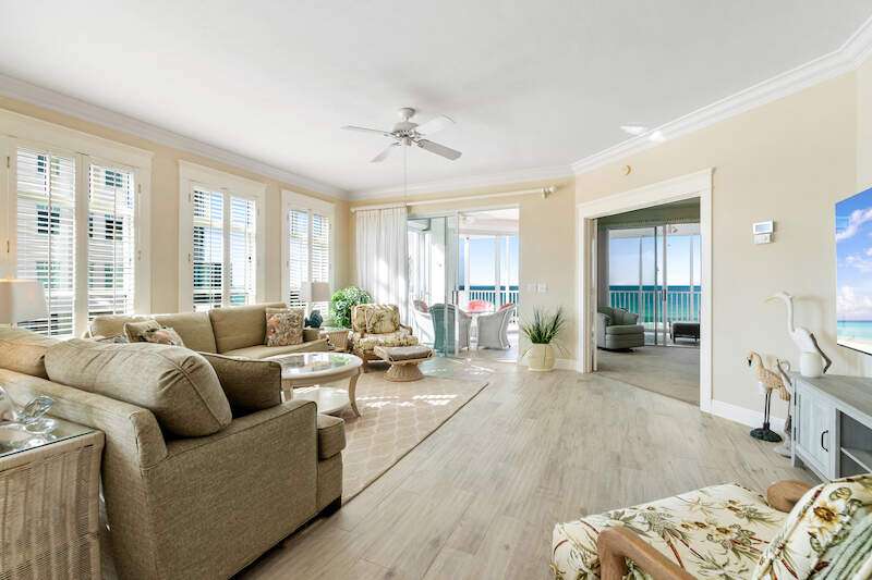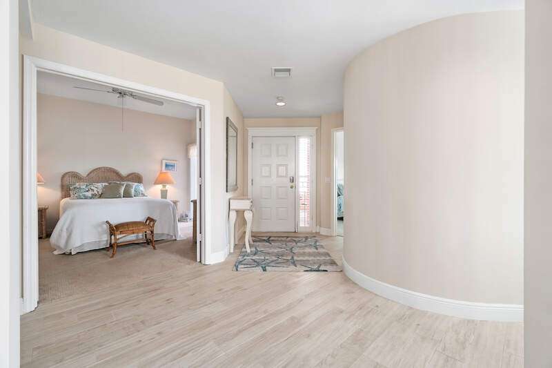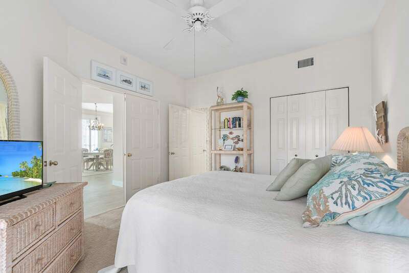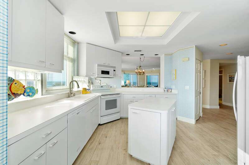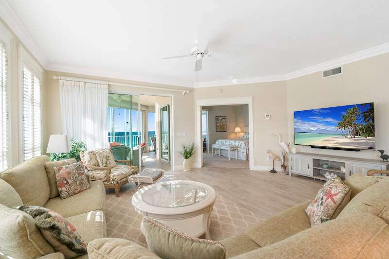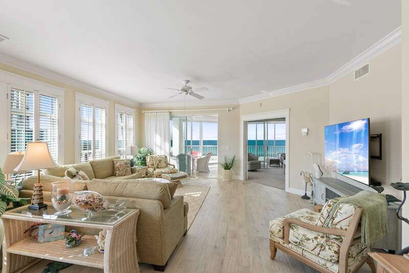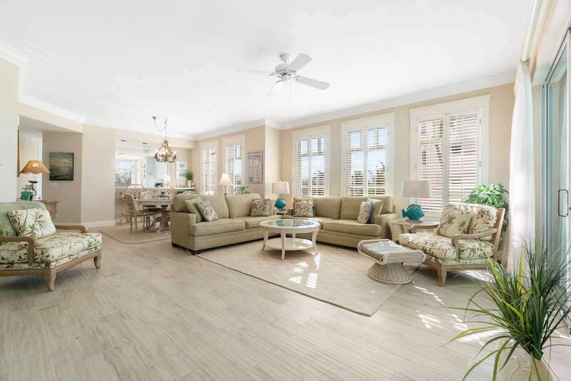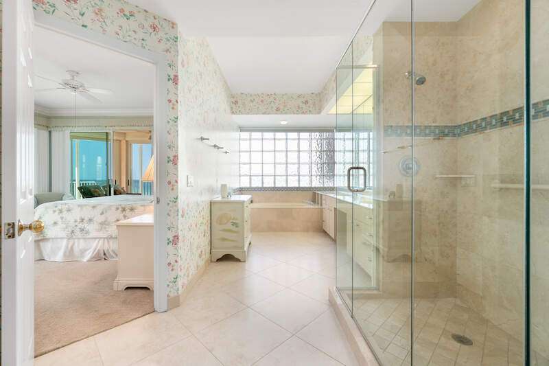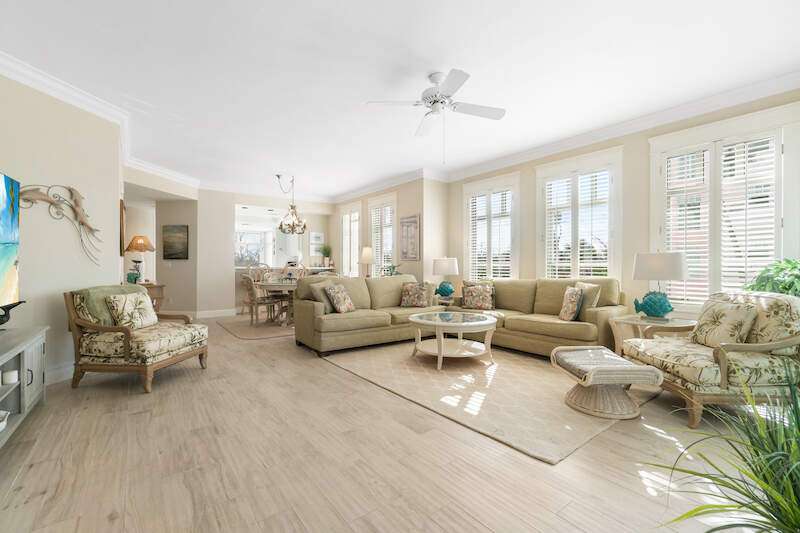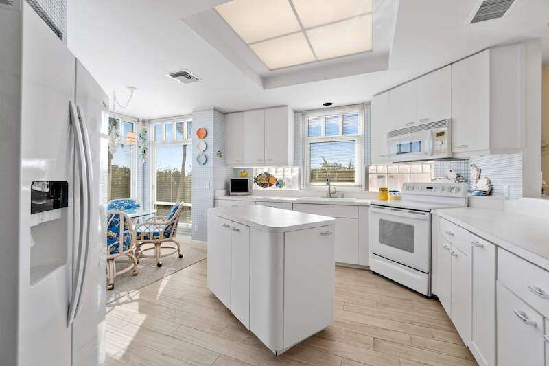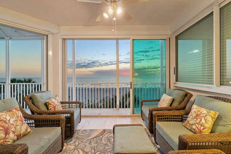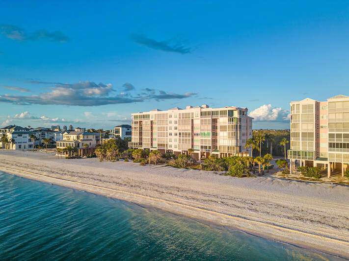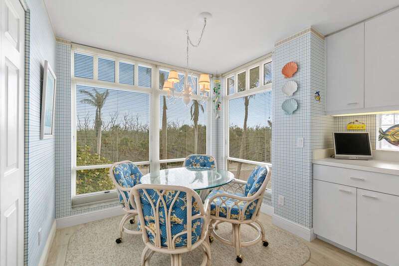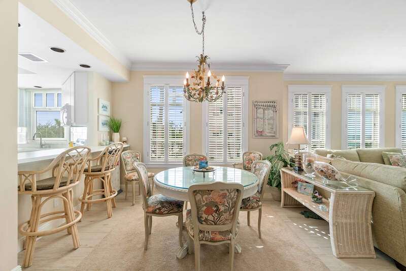 Stunning Direct Beachfront END-UNIT with unobstructed Gulf views in North Naples' Barefoot Beach Club. This coastal retreat offers sweeping Gulf vistas and breathtaking sunsets from your spacious lanai. Boasting over 2,000 sq ft under air, this unit offers 3 bedrooms, 3 bathrooms, electric hurricane shutters, a light & bright interior, and wood-look tile flooring. Enjoy extraordinary natural light courtesy of the extra windows available in a rare end-unit. The spacious kitchen features white cabinetry and countertops, an inviting eat-in area, and a convenient breakfast bar for casual dining. The well-designed split floor plan ensures privacy and comfort, with two guest bedrooms located at the front of the unit, while the primary suite is positioned on the Gulf side offering a peaceful retreat with breathtaking views. The primary suite features private lanai access, an expansive walk-in closet, and a spa-like bathroom with dual vanities, a large shower, and a separate soaking tub. Nearby to the NEW CLUBHOUSE with state-of-the-art fitness center & resort-style pool. Barefoot Beach residents enjoy 3 miles of beach, 2 pools/spas, manned/gated entry, & on-site mgmt. OPTIONAL "Club at Barefoot" offers tennis, 2 restaurants & beachside food/bev/chair service. Excellent Collier County location minutes to Mercato, Waterside & easy access to RSW Airport.