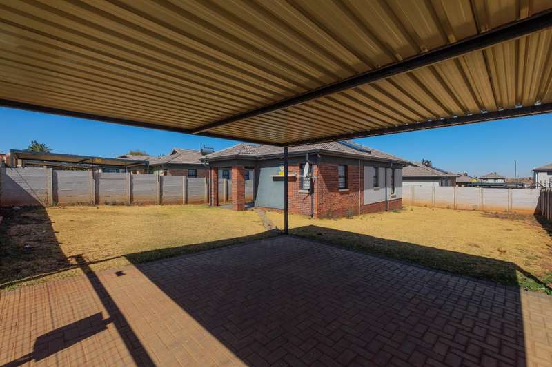 Modern 3-Bedroom House Discover this lovely home featuring 3 bedrooms, with the main bedroom offering an en-suite bathroom. The modern kitchen is beautifully finished, leading into a warm and inviting living space. The property includes a spacious yard, perfect for family living, and covered parking for two cars. Situated in a fairly new, well-developed area, this home offers both comfort and convenience. * Prepaid Electricity Contact me to get more information or arrange a viewing.
