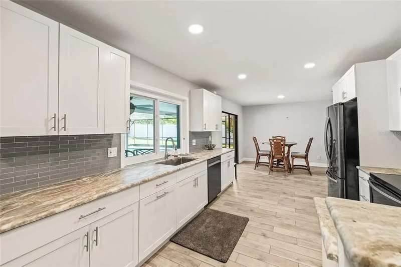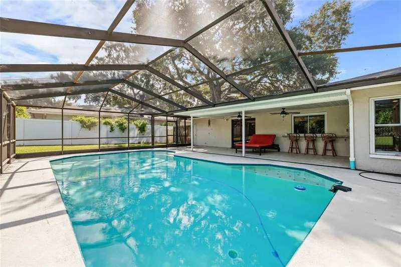 Welcome to 1624 Pine Place, an inviting and updated 2-bedroom, 2-bath home tucked away on a quiet cul-de-sac in the sought-after Windsor Woods neighborhood. This spacious home offers 1,716 square feet of comfortable living space with a thoughtful split floor plan, a fully updated kitchen with modern cabinetry and appliances, a formal dining room, and a light-filled living area featuring crown molding and a charming bay window. The oversized primary suite includes his-and-hers closets and an updated private bathroom with a walk-in shower, while the second bathroom remains in its original, well-kept condition. Step outside to your own private oasis with a large screened-in pool, surrounded by mature trees on a generous .30-acre lot. Most of the windows have been replaced, and the oversized two-car garage provides ample storage. Located in an X flood zone with no history of flooding, this home offers both peace of mind and a wonderful lifestyle in one of the area's most established and welcoming communities, while being only just a short drive to the beach!