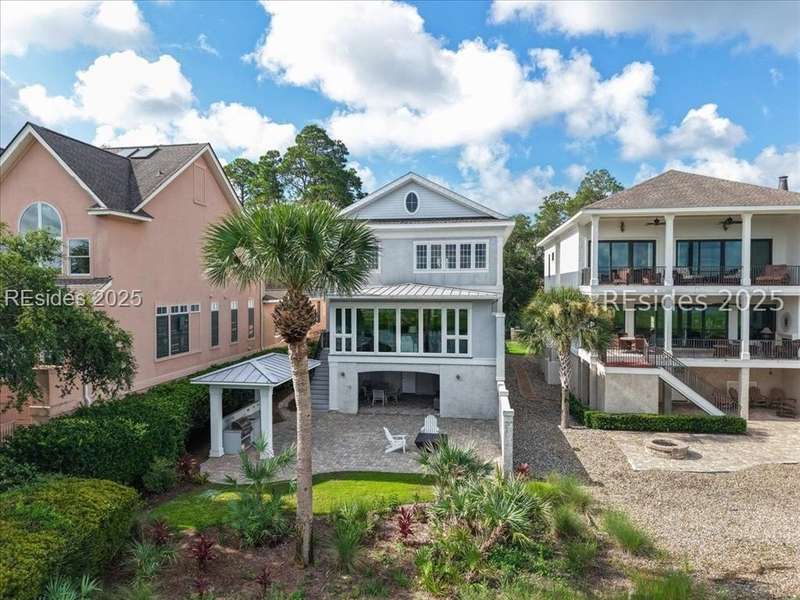 Stunning Lowcountry-style home showcasing rarely available & expansive, unobstructed Broad Creek views. Thoughtfully designed & exquisitely finished, this 4BD + den, 4.5BA residence blends timeless architecture with upscale comfort, just a short stroll to the world-class clubhouse, marina, tennis courts, golf & pool. Light & bright interior featuring hardwood & brick flooring, multiple fireplaces, & custom millwork throughout. Chefs kitchen impresses with marble countertops, high-end appliances, and generous prep space. Multiple charming porches, built-in outdoor grill, & fire pit, all set against the backdrop of serene waterfront views where sunsets are a spectacular show every night. Additional highlights: wine cellar, elevator, newer HVAC systems, every bedroom with ensuite, & expansive first-floor storage. Sold fully furnished, making it the perfect turnkey escape in one of Hilton Heads most desirable communities.