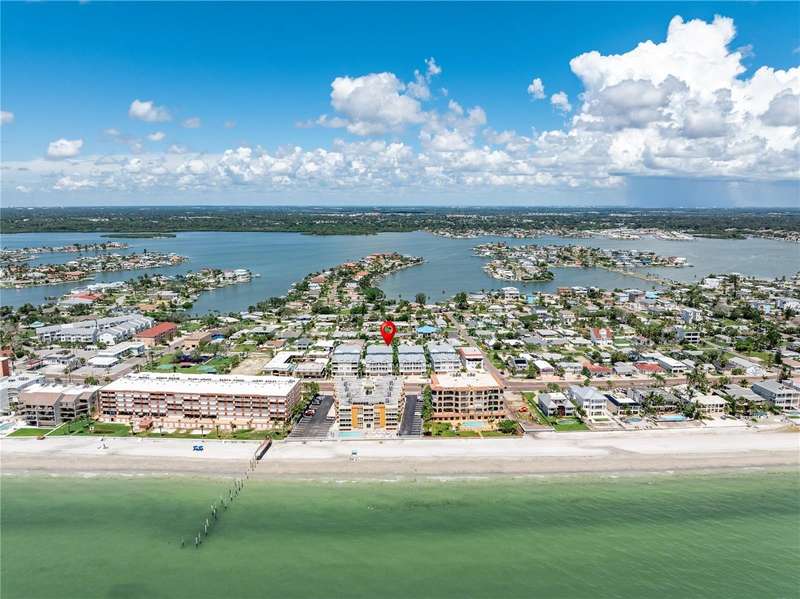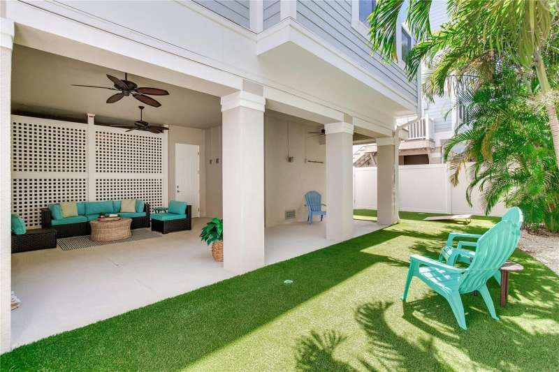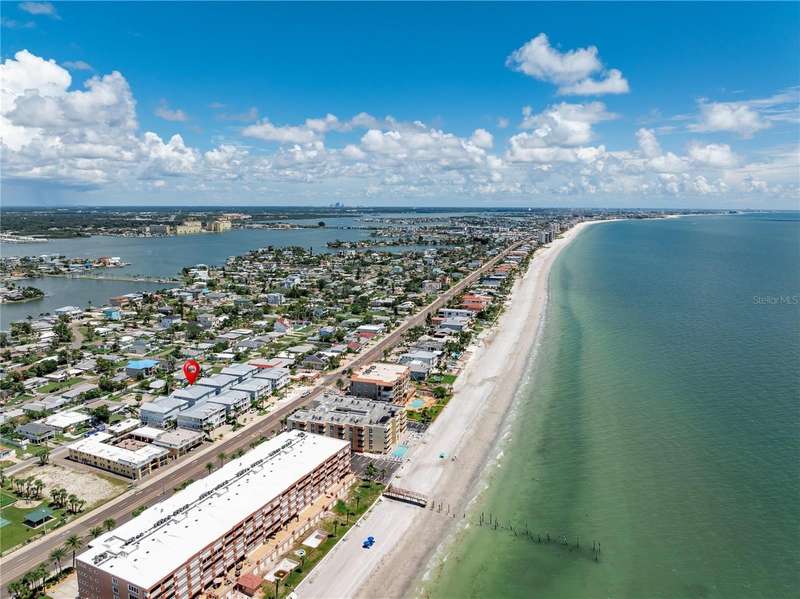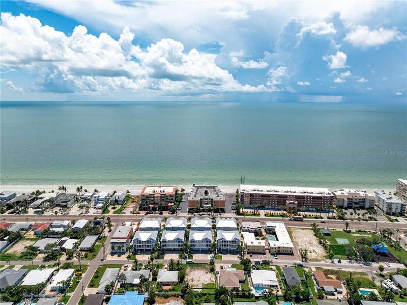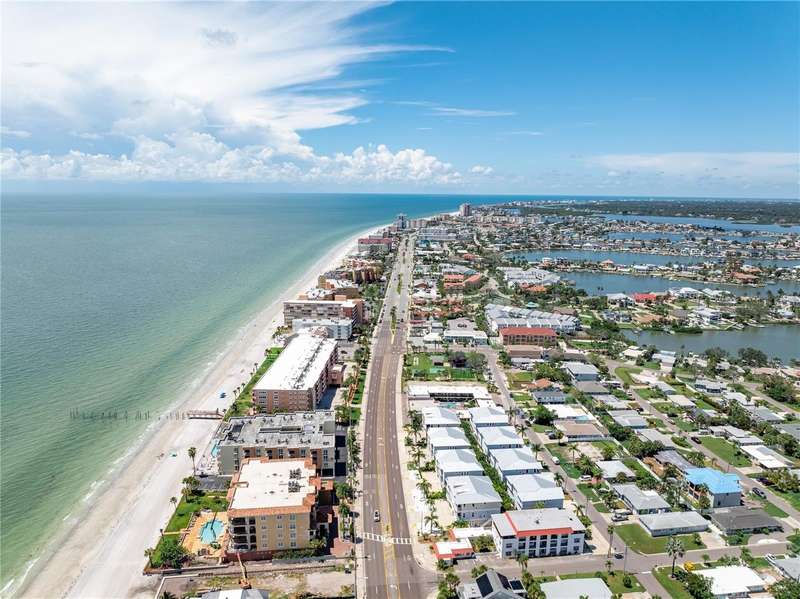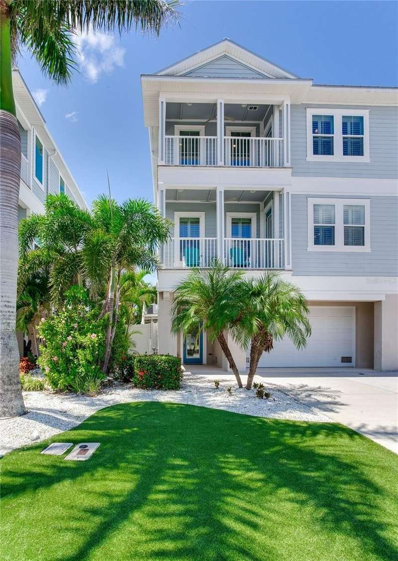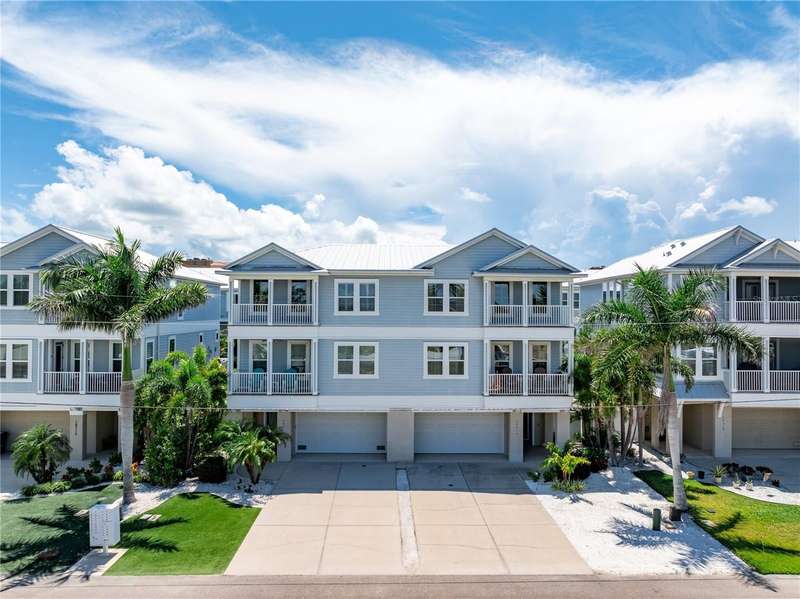 Under contract-accepting backup offers. COASTAL LUXURY LIVING IN REDINGTON BEACH WITH ELEVATOR & FURNISHED! Welcome to 16312 1st St E, a stunning 4-bedroom, 3.5-bath coastal residence that perfectly combines elegance, functionality, and the relaxed Florida lifestyle. This home makes a grand impression with soaring two-story ceilings in the great room, walls of windows with plantation shutters, and an open-concept design that fills the living spaces with natural light. The gourmet kitchen is a showstopper, boasting a large quartz island with seating for six, stainless steel appliances including a gas cooktop and wall oven, shaker-style cabinetry, and a timeless subway tile backsplash—all flowing seamlessly into the dining and living areas, making it perfect for both entertaining and everyday living. The spacious primary suite, conveniently located on the main level, offers a spa-inspired ensuite bath with dual vanities, a frameless glass shower, and an oversized walk-in closet. Upstairs, an elevator or staircase leads to a versatile loft, three guest bedrooms—including one with a private ensuite—and an additional beautifully updated full bath, offering plenty of comfort and privacy. Outdoor living is at its finest with multiple covered balconies and a large front porch on the lower level, ideal for enjoying morning coffee or evening cocktails in the coastal breeze. The ground floor also features a generous covered patio with ceiling fans and a fully fenced tropical backyard designed for relaxation and entertaining. An oversized two-car garage with epoxy flooring provides ample parking and storage. Perfectly located just steps from the sugar-white sand beaches and close to dining, shopping, and boating on Boca Ciega Bay, this move-in ready home offers the very best of Redington Beach living.
