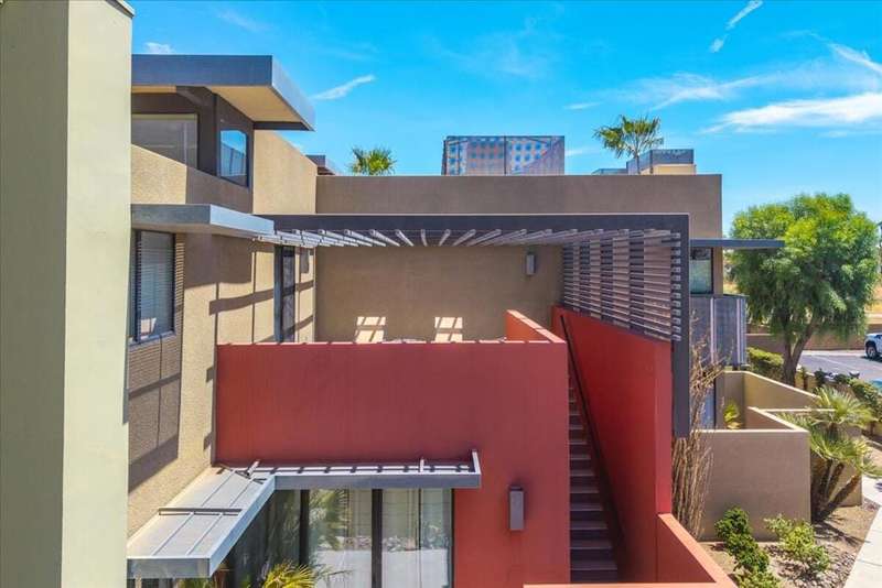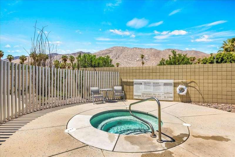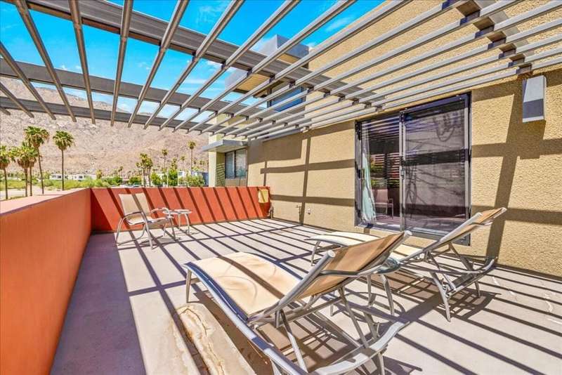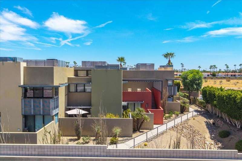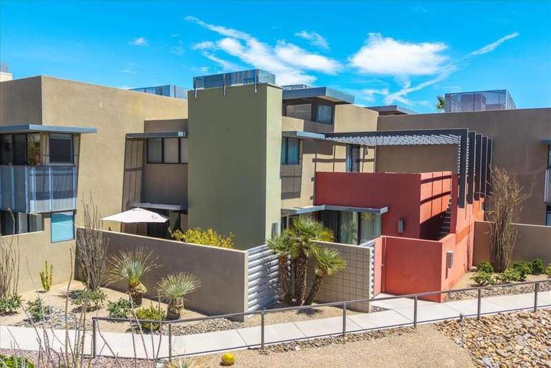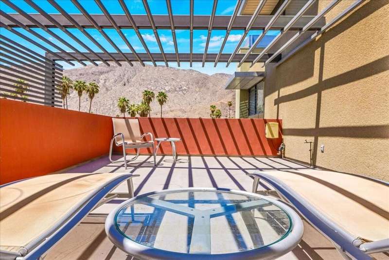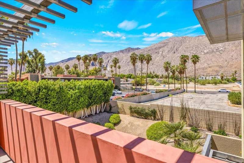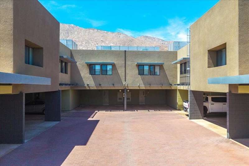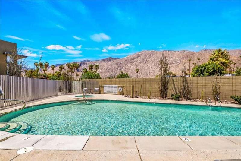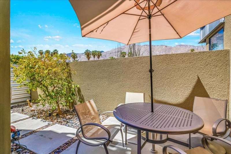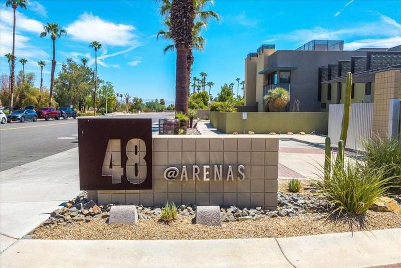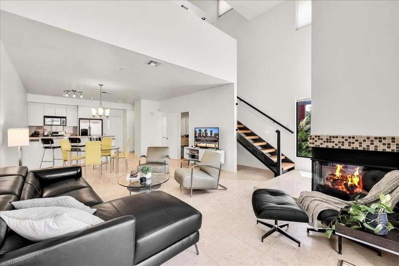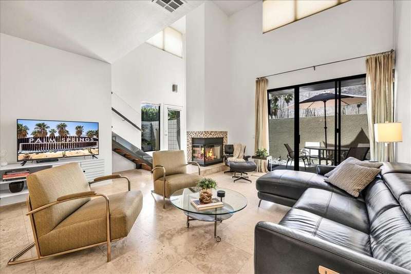 Back on the market! Welcome to 691 E. Arenas, this town-house style condo is located in the gated community of 48 @ Arenas, just minutes from the popular Palm Springs downtown district. This stylish 2-bedroom, 2.5-bath home offers great views of the San Jacinto Mountains with modern design, dramatic volume ceilings, and abundant natural light. The main level features an open living area with fireplace, dining space, and a well-appointed kitchen, all flowing seamlessly to a private patio with stunning mountain views. The primary suite is located downstairs with direct patio access, while the loft-style second suite upstairs provides flexibility for guests or a home office. The upper loft offers access to the large balcony with amazing mountain views! Both bedrooms include en-suite baths for ultimate privacy and spacious walk-in closets. Additional highlights include an in-unit laundry, 2 assigned carport parking spaces and access to community pools and spas. Perfectly located and within close proximity to central Palm Springs-- near shopping, dining, and entertainment--this residence combines convenience with resort-style living. Low Hoa fees include; gated entry, earthquake insurance, water, trash, pools/spas, and roof maintenance. Fee Land. Furnishings may be negotiated outside of escrow.