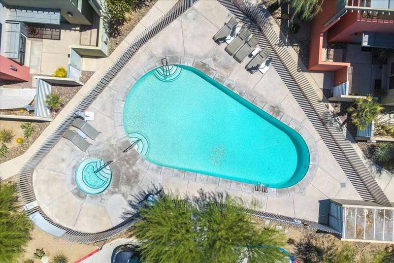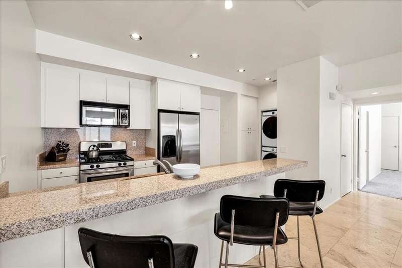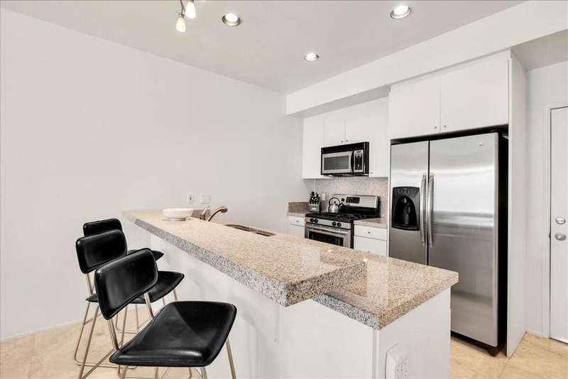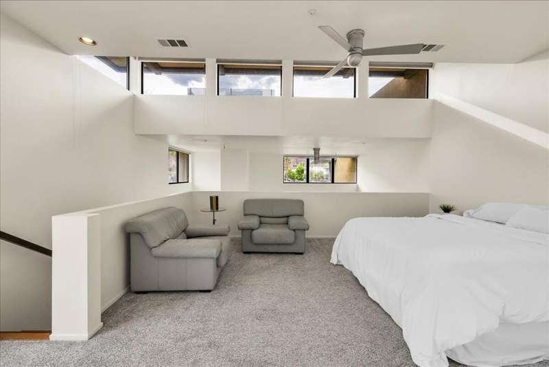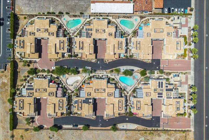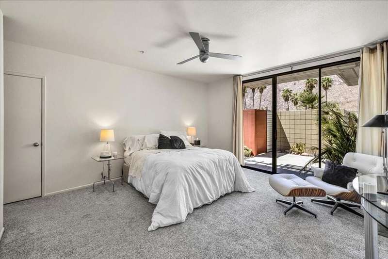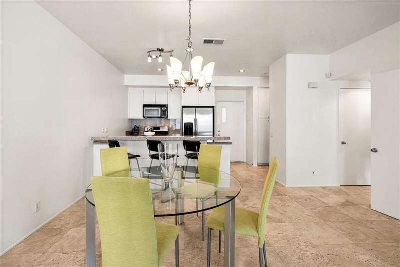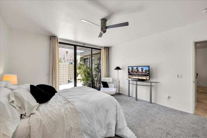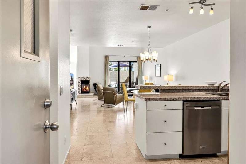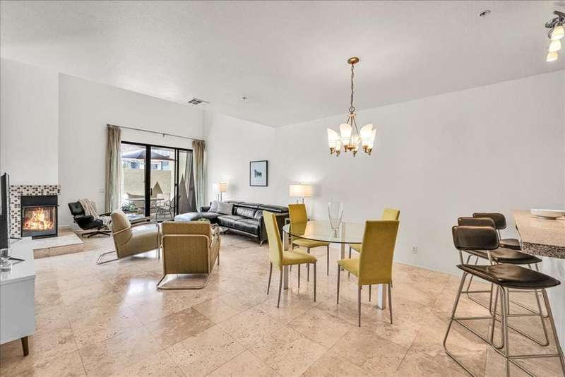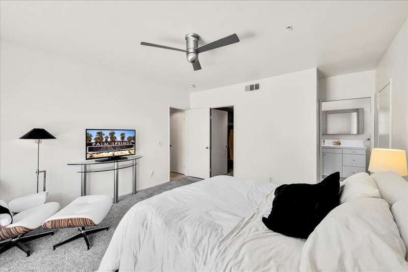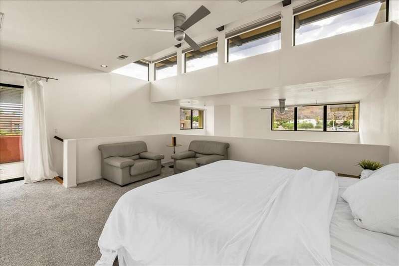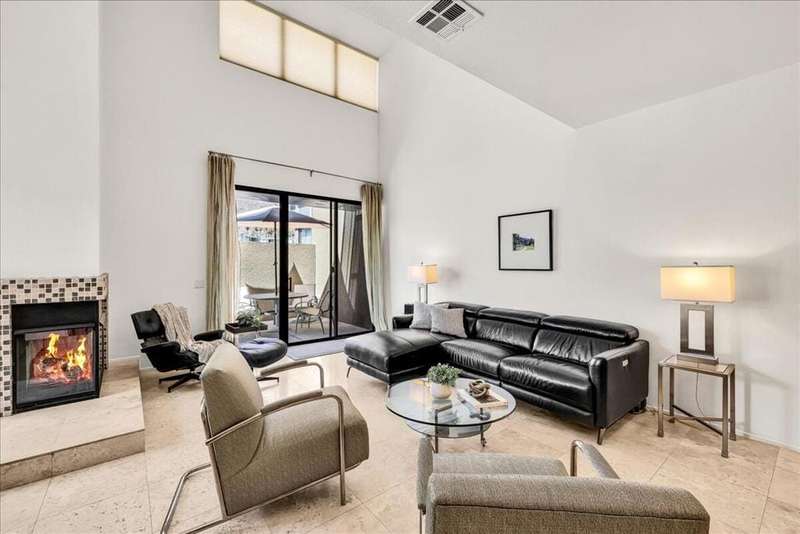 Back on the market! Welcome to 691 E. Arenas, this town-house style condo is located in the gated community of 48 @ Arenas, just minutes from the popular Palm Springs downtown district. This stylish 2-bedroom, 2.5-bath home offers great views of the San Jacinto Mountains with modern design, dramatic volume ceilings, and abundant natural light. The main level features an open living area with fireplace, dining space, and a well-appointed kitchen, all flowing seamlessly to a private patio with stunning mountain views. The primary suite is located downstairs with direct patio access, while the loft-style second suite upstairs provides flexibility for guests or a home office. The upper loft offers access to the large balcony with amazing mountain views! Both bedrooms include en-suite baths for ultimate privacy and spacious walk-in closets. Additional highlights include an in-unit laundry, 2 assigned carport parking spaces and access to community pools and spas. Perfectly located and within close proximity to central Palm Springs-- near shopping, dining, and entertainment--this residence combines convenience with resort-style living. Low Hoa fees include; gated entry, earthquake insurance, water, trash, pools/spas, and roof maintenance. Fee Land. Furnishings may be negotiated outside of escrow.