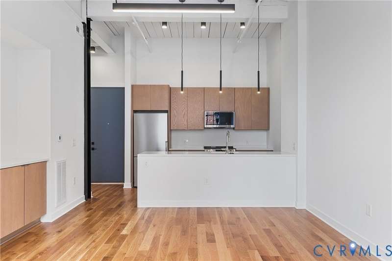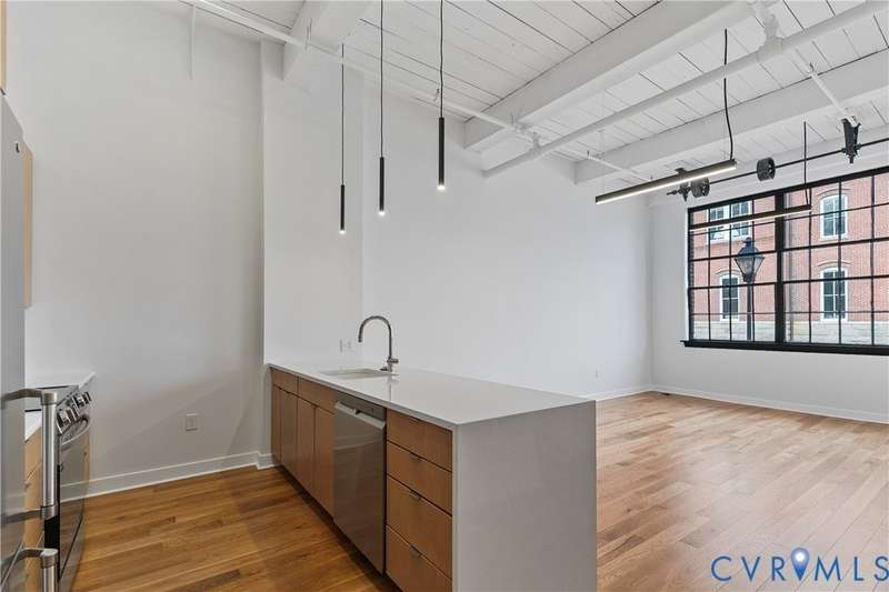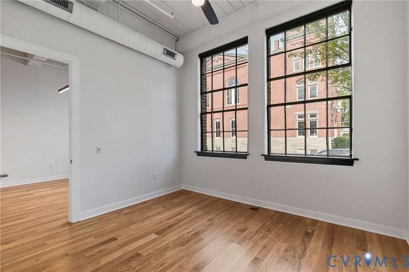 The Broom Factory, originally home to the Richmond Broom Manufacturing Company, is a 1921 landmark that has been masterfully reimagined and renovated into 12 custom condominiums with generous layouts. The building's historic character has been preserved but redesigned to deliver every modern comfort. Step inside and discover soaring ceilings (up to 14 feet), enormous steel casement windows flooding each home with natural light, and real white oak flooring throughout. This particular unit is on the first floor and has one bedroom, one full en suite bathroom and a powder room as well as an open concept Living room and Kitchen with incredible light. Each residence features high-end finishes, including granite countertops, designer lighting, walk-in closets, double vanities and LG appliances, plus full-size washers & dryers and all-new systems. Amenities include covered & secure parking for each unit, dedicated basement storage, elevator, bike racks and a dog/kayak/cooler washing station. The rooftop deck delivers sweeping views of the James River and Richmond's skyline. Perfectly situated in the heart of Shockoe Bottom-just steps to Taylor's Hill Park, the Canal Walk, VCU, museums, and some of Richmond's best restaurants-2201 E Main Street offers the rare opportunity to own a piece of history while enjoying a truly modern lifestyle.