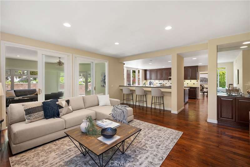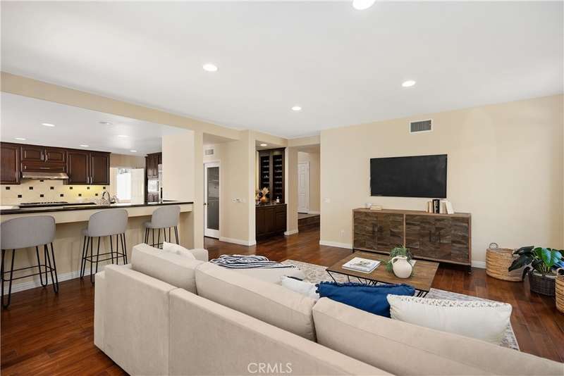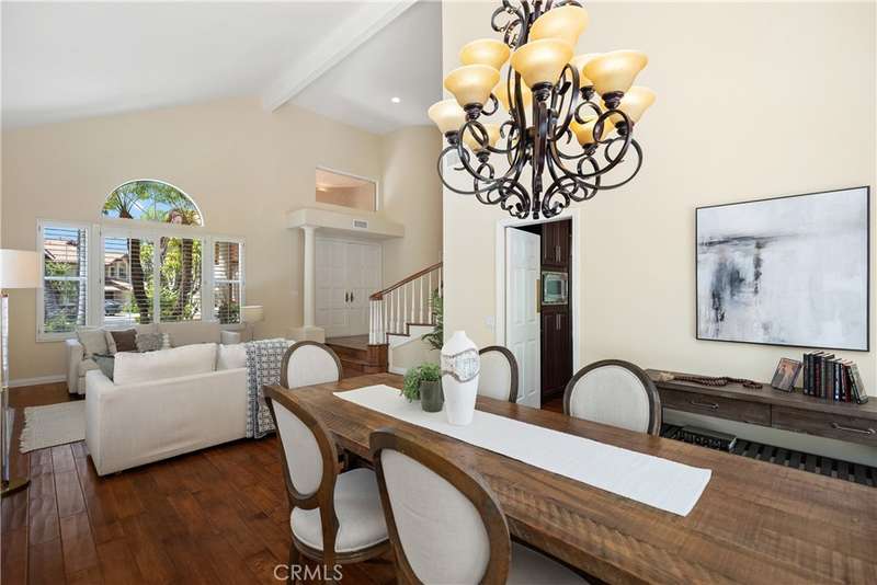 Embrace an unparalleled lifestyle in this exquisite five-bedroom, four-bath residence, perfectly positioned on one of the largest and most private lots within the coveted Canyon Crest community. Situated at the end of a cul-de-sac, this home offers a truly unique indoor-outdoor living experience on a sprawling 9,139 square-foot lot. As you step through the double doors, you are welcomed by a grand living & dining room, where soaring vaulted ceilings & rich hardwood floors create an immediate sense of elegance, an inviting atmosphere with natural light flooding the rooms.