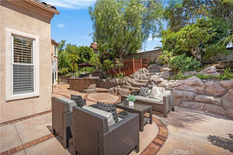 The magic of this home extends to its resort-like backyard, an oasis designed for entertaining & tranquil escapes. A built-in BBQ and ample patio space make hosting a delight, while a charming treehouse area offers peaceful Zen corner. The opposite side of the yard captivates with a waterfall cascading among lush, mature palm trees, a custom fire pit for cozy evenings. This home is replete with desirable features, including elegant plantation shutters, three fireplaces, re-piping, a whole-house water softener, & brand-new garage doors.