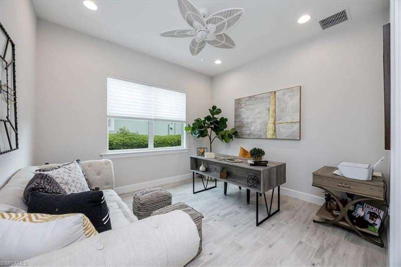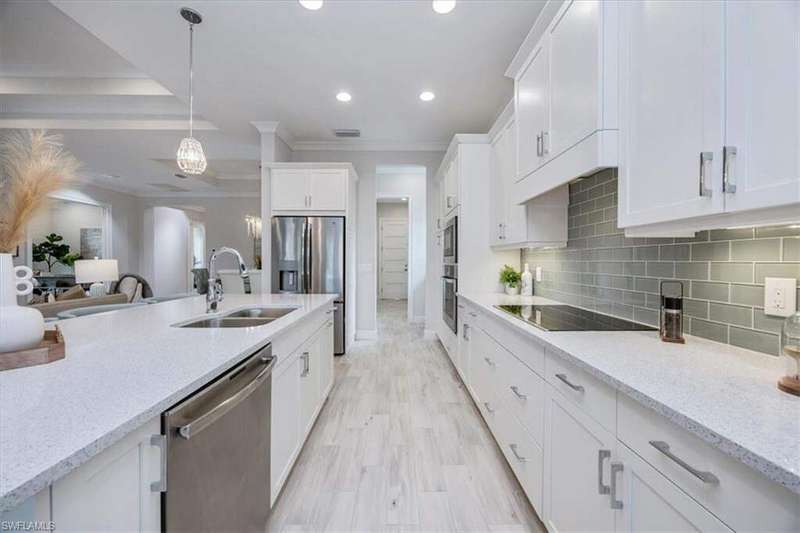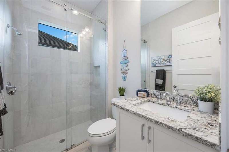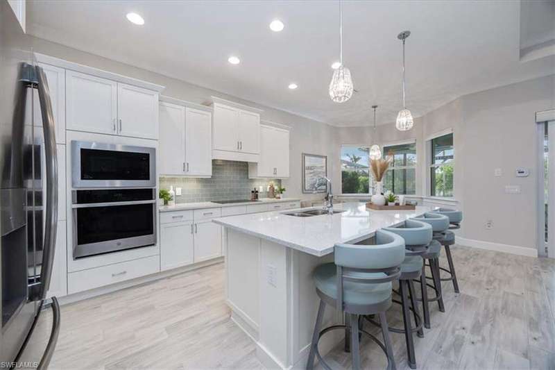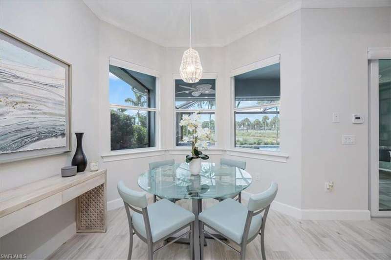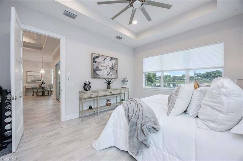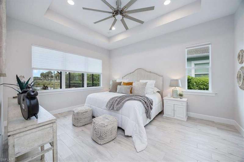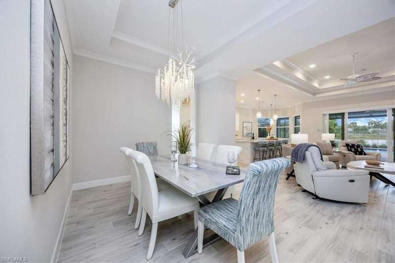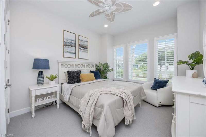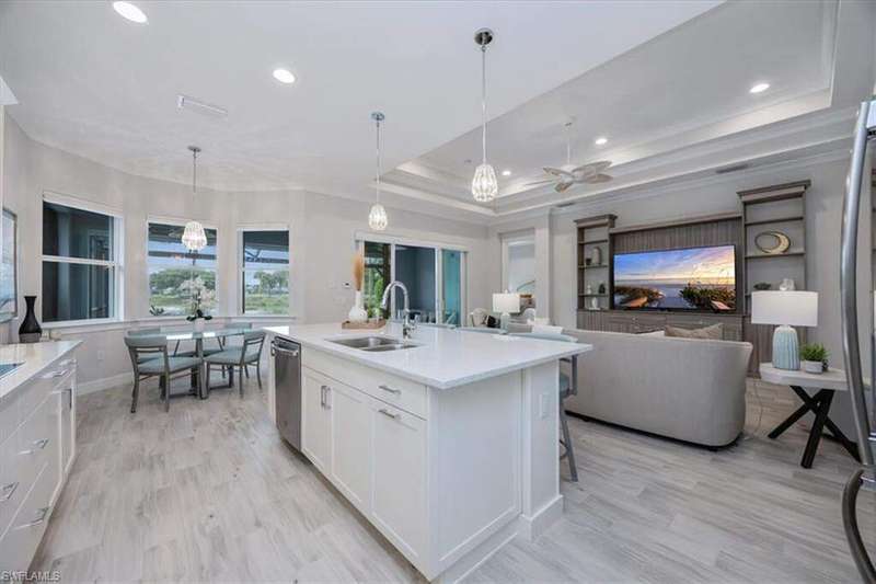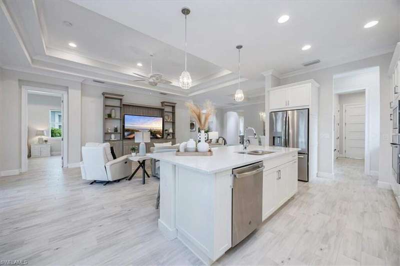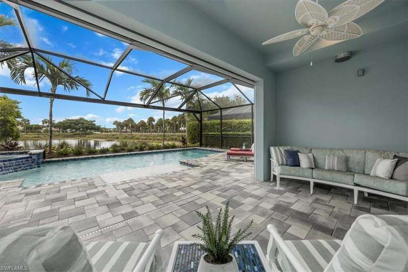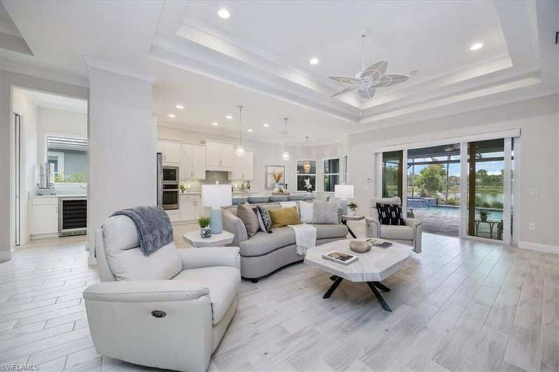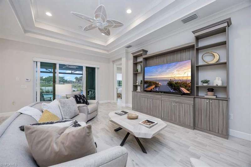 Welcome to your private coastal retreat at 5773 Anegada Drive! This meticulous 'Gardenia' home blends coastal charm, comfort, and style with peaceful lake views as its backdrop. Den is in the process of being converted to a 3rd Bedroom within this pristine, light-filled residence designed for effortless living. The open-concept floor plan seamlessly connects the family room, kitchen, and dining areas-perfect for both relaxing and entertaining. The chef's kitchen boasts white soft-close cabinetry, quartz countertops, stainless steel appliances, a spacious island, and a dry bar with wine refrigerator. Sophisticated finishes include tray ceilings, crown molding, custom lighting and fans, and motorized privacy shades throughout. Outdoors, enjoy ideal northern exposure and tranquil lake views from your private retreat featuring a sparkling saltwater pool and spa with sun shelf and bubblers. A picture-frame screen enclosure covered living and dining areas, and lush custom landscaping create a serene oasis, while motorized Storm Smart protection ensures convenience and security. Every detail has been thoughtfully designed to combine elegance, comfort, and livability-making this move-in ready home the perfect place to begin your Naples lifestyle. The Isles of Collier Preserve is a private, gated community less than 5 miles from Old Naples' world-class dining, boutique shopping, and pristine beaches. Surrounded by natural beauty and just minutes from the Naples Botanical Gardens, Hamilton Harbor Yacht Club, East Naples Park, and the Bayshore Arts District, The Isles offers an unmatched lifestyle. Residents enjoy a state-of-the-art fitness center, resort-style and lap pools, 14 pickleball courts, 6 tennis courts, bocce, a dog park, and the waterfront Overlook Bar & Grill. Over 8 miles of scenic trails and winding waterways invite kayaking, paddleboarding, biking, and bird watching. With low HOA fees and Naples ranked the #1 place to live in America, The Isles blends luxury, nature, and convenience.