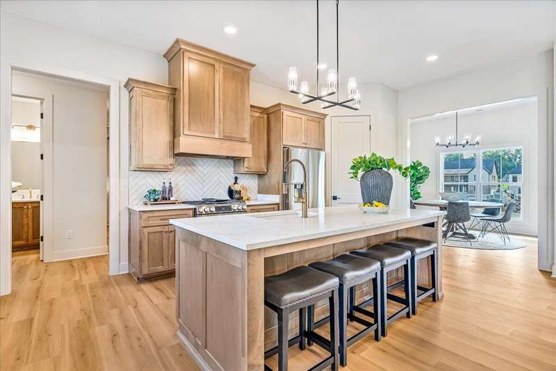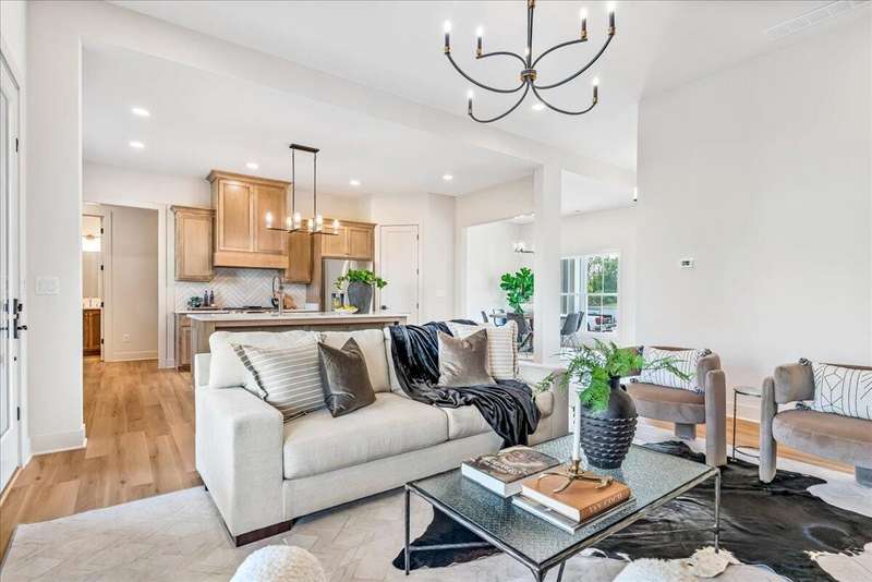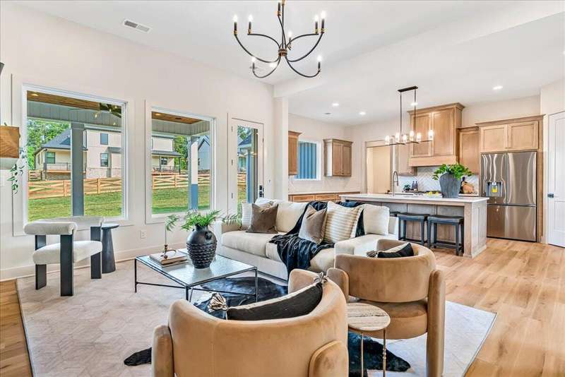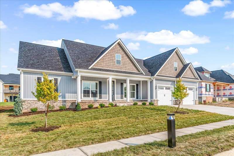 Welcome to this brand-new, 3 bedroom/3 Bath, craftsmen style ranch in the highly desirable Legends subdivision. It has curb appeal, a 2 car garage, open concept living, quartz countertops throughout, home office, lots of natural light, this home combines modern design with everyday functionality. Thoughtful details like a custom feature, large gourmet kitchen with ample countertops and pantry, fireplace accent wall, home office, luxury style flooring, soft close cabinetry, eat in kitchen island, and a beautiful primary suite with vaulted ceiling and stained wood beam, plus a refrigerator that makes craft and cube ice. Utilities include Carrier gas heat HVAC with zoning for the primary suite. The spacious design (8' doors throughout), 30' deep garage, Large covered patio with stained wood ceiling, his and hers closets in primary bathroom (as well as motion activated under cabinet lighting), landscaping, mudroom with drop zone, and gorgeous neighborhood will steal your heart. Next to Bluegrass Parkway exit, Frankfort, Lexington, Keeneland Race Tracks and numerous other attractions in Woodford County itself! With your proximity to downtown happenings and the custom finishes, 733 Azalea, will be hard to miss.