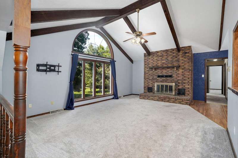 Welcome to your private retreat! This spacious 4 bedroom, 2.5 bathroom home sits on 3 peaceful acres, offering the perfect blend of comfort and seclusion. Inside, you'll find an updated kitchen with modern finishes, ideal for both everyday living and entertaining. A large picture window in the living room brings in natural light and views of mature trees, creating a peaceful ambiance, while the large deck off the back is perfect for gatherings, grilling, or simply enjoying the outdoors. A rare find with space, style, and privacy all in one! A partially finished basement with a second living room and cozy fireplace, ideal for movie nights or extra living space. A rare opportunity to enjoy space, style, and serenity all in one!