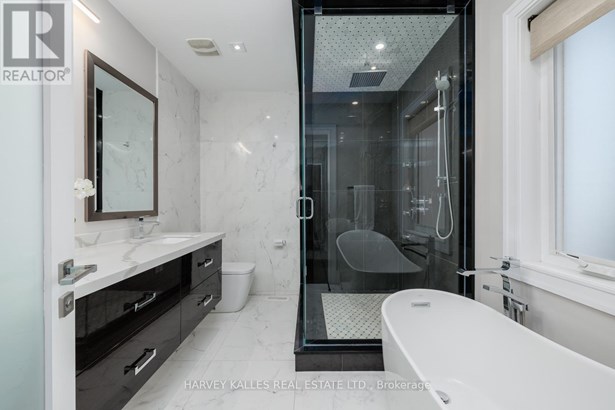 Prepare to Be Amazed when you visit this spectacular custom-built residence. An ultra-rare opportunity on a premium 45 x 110 ft lot in one of Toronto's most sought-after East York neighbourhood. This show-stopping home boasts over 3,100 sq ft of finished living space, designed for those who demand style, comfort, and the best in modern luxury. Soaring 10-ft ceilings bathe the main floor in sunlight, highlighting gleaming hardwood floors, dramatic skylights, and hand-crafted built-ins throughout. Entertain in grand style in the stunning open-concept living spaces. With a jaw-dropping gas fireplace set in backlit onyx for unforgettable ambiance.The gourmet, eat-in kitchen is a chef's paradise, featuring top-of-the-line stainless appliances, designer stone counters, sleek cabinetry, and walk-out to a beautifully landscaped oasis. Lush interlock yards front and back, meticulously designed for outdoor entertaining.This thoughtfully designed home has 4+2 spacious bedrooms and 6 spa-inspired bathrooms, including a master retreat with a lavish ensuite that rivals the finest hotels. The fully finished lower level is incredibly versatile. Ideal for a rec-room, in-law suite, or potential income unit, with rough-in kitchenette, a second laundry, and a private side entrance with keyless entry for ultimate flexibility. Rare detached garage + parking for 5 cars means hosting friends and family is a breeze. Enjoy the ultimate live, work, play lifestyle. Walk to the city's best schools, parks, rec. centres, trendy restaurants, shops, TTC and Subway (future Ontario Line at Cosburn/Pape), easy access to highways.This is an unparalleled opportunity for the discerning buyer who wants it all. A true must-see that exceeds every expectation. Don't Miss Out. Homes Like This Rarely Come to Market! Book Your Private Tour NOW Before Its Gone!