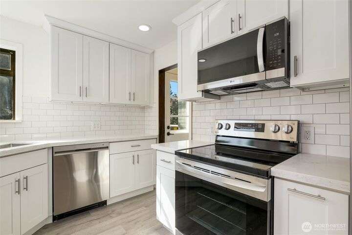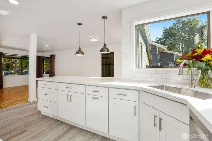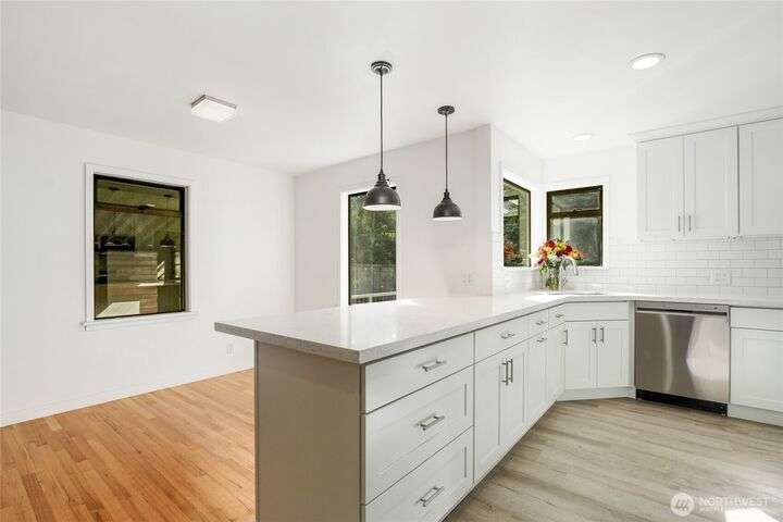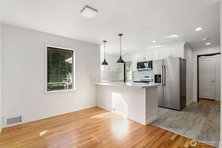 Discover this beautifully updated West Seattle gem, perfectly positioned in the heart of West Seattle. The home showcases a new kitchen; gorgeous countertops and modern appliances. Gleaming hardwood floors flow throughout the open living room and bedrooms, creating an elegant feel. The main full bathroom has updates with clean finishes. The lower level is incredibly versatility with charming family room complete with a gathering bar – perfect for movies or entertaining. Amenities also include a convenient workshop, laundry appliances, and 3/4 bathroom. Backyard oasis: with excellent sun exposure and entertainment-sized deck ideal for hosting fun. Property offers modern amenities and HUGE potential, looking to enjoy West Seattle living.