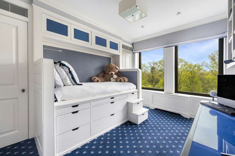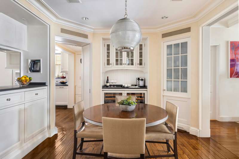 The gallery/dining room is flexible and spacious with room to comfortably seat 10 - 14 people. Three of the four bedrooms enjoy direct views of Central Park and include ensuite bathrooms, complete with Barber Wilsons bath fixtures, basket-weave mosaic floors,  and Toto toilets. The corner venetian-plastered primary bedroom includes a wonderful dressing room hallway that leads from the primary bedroom to bedrooms two and three. The fourth bedroom works well as a guest room or home office, and the fourth full bathroom