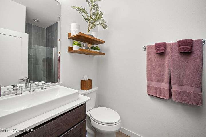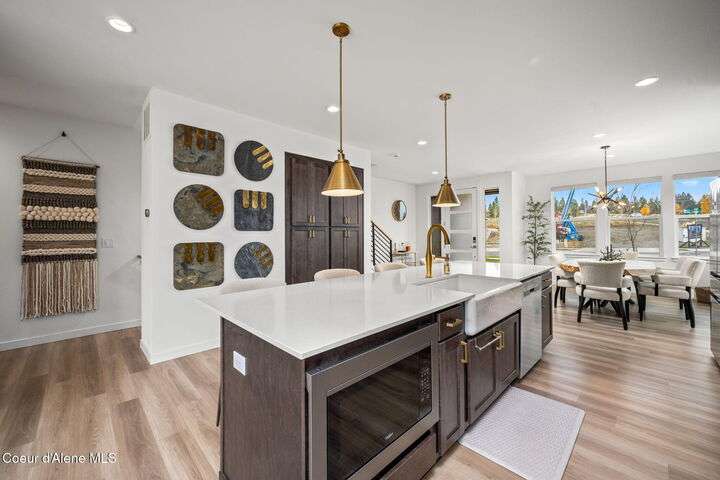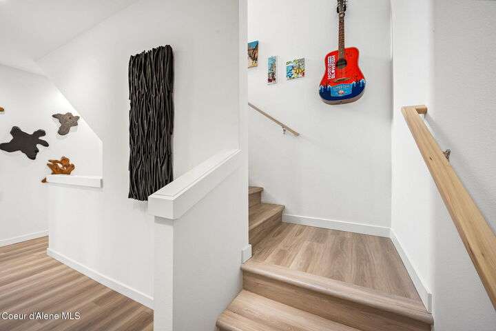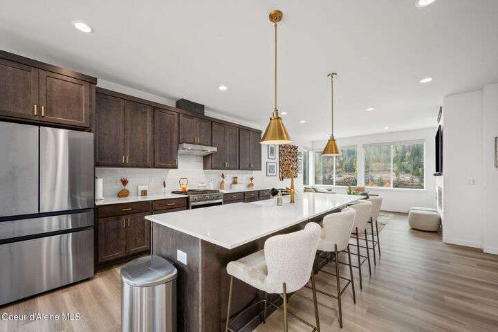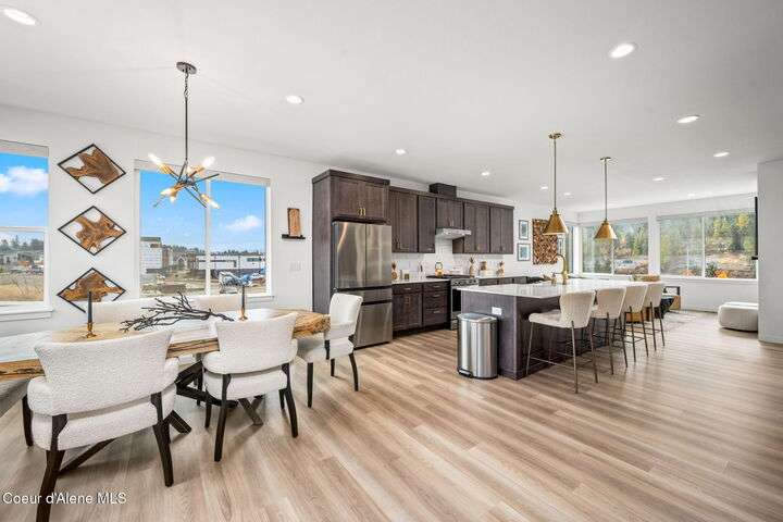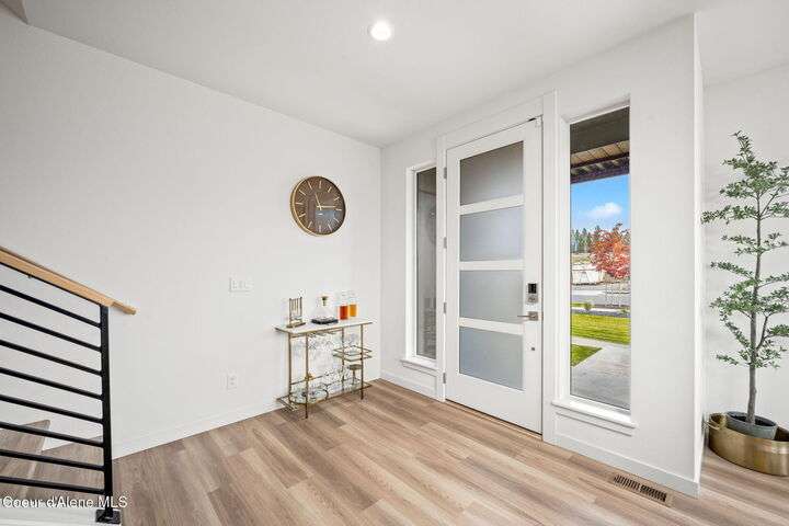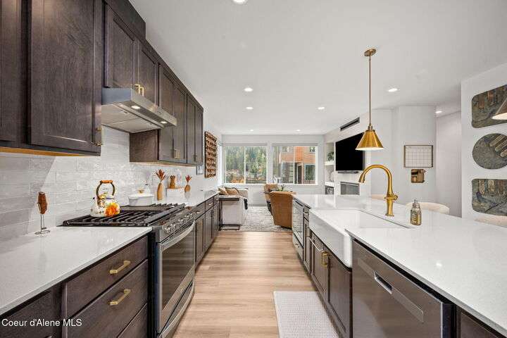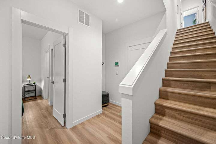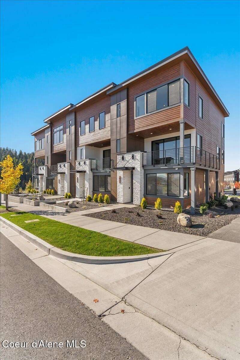 Modern Luxury Living at Atlas Waterfront Experience modern luxury living in one of Coeur d'Alene's most sought-after communities, Atlas Waterfront. This stunning 4-bedroom, 3.5-bath contemporary home spans 2,145 sq. ft. with amazing views of the Spokane River. Step inside to an open-concept floor plan featuring LVP flooring throughout, an expansive quartz island, and sleek modern finishes that blend style with functionality. Enjoy easy living with upgraded remote window treatments and a smart security system for peace of mind. Perfect for entertaining or relaxing, the rooftop sun deck captures river views, natural forest across the river, and glowing sunsets. Outside your door, walking trails and parks invite you to explore the natural beauty of the waterfront community. Every detail of this home has been designed for comfort, convenience, and sophistication—offering the perfect blend of urban energy and serene riverside living.