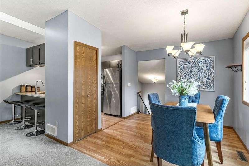 Welcome to this beautifully updated 2-bedroom, 2-bath townhome that combines modern elegance with everyday convenience. Perfectly situated in a prime Minnetonka location, you’ll enjoy quick access to restaurants, shopping, scenic trails, and major highways. Step inside to find a bright, open-concept layout with soaring vaulted ceilings, a skylight, and large balcony doors that flood the home with natural light. The living room features a newer fireplace, perfect for cozy evenings, while the updated kitchen is a chef’s delight with granite countertops, stainless steel appliances, and ample space for entertaining. Recent updates include newer carpet, fresh paint, stylish light fixtures, and an updated AC unit. The roof is less than 8 years old, and the lower-level windows have already been replaced—giving you peace of mind. Host summer gatherings on the easy-to-maintain deck or relax in privacy with the benefits of a corner unit. The association offers a well-run community with low monthly fees, making it an excellent choice for those seeking both comfort and value. This is everything you want in a Minnetonka townhome—style, updates, location, and affordability—all wrapped into one!