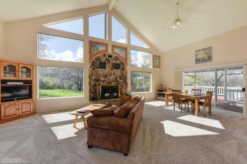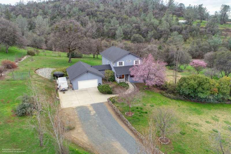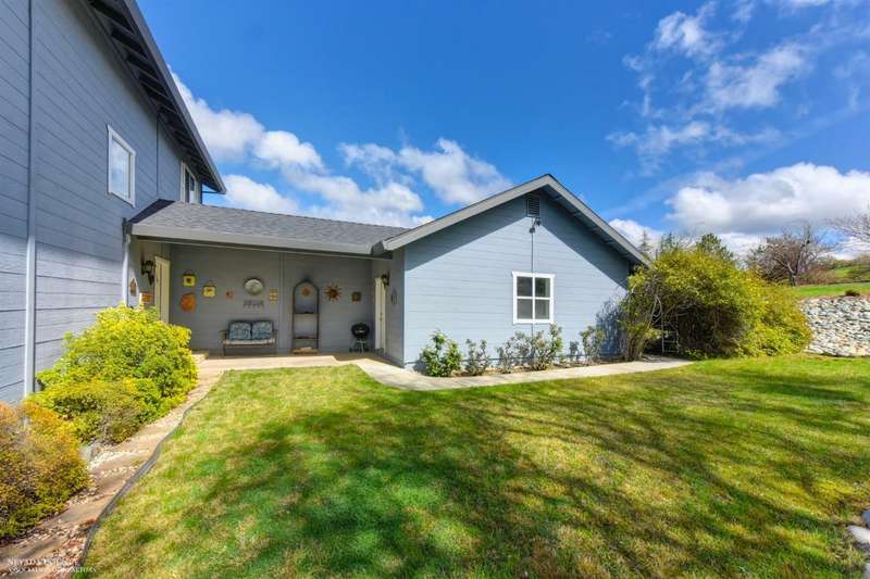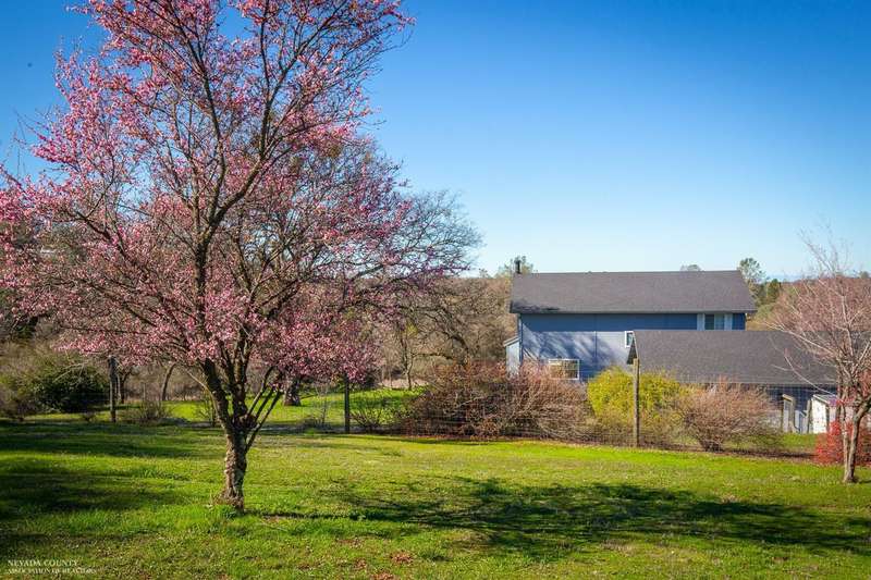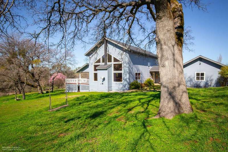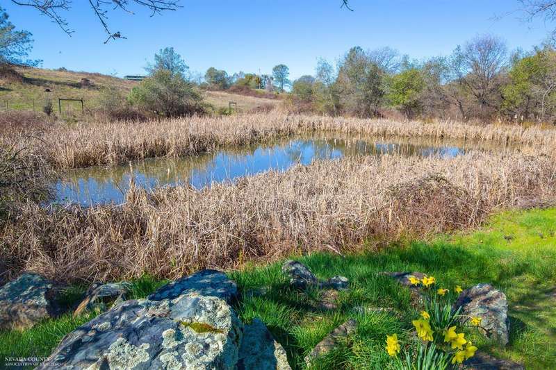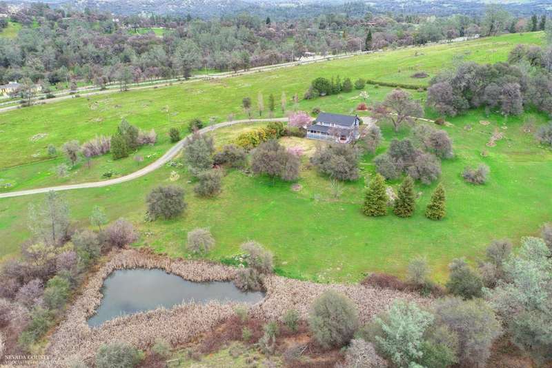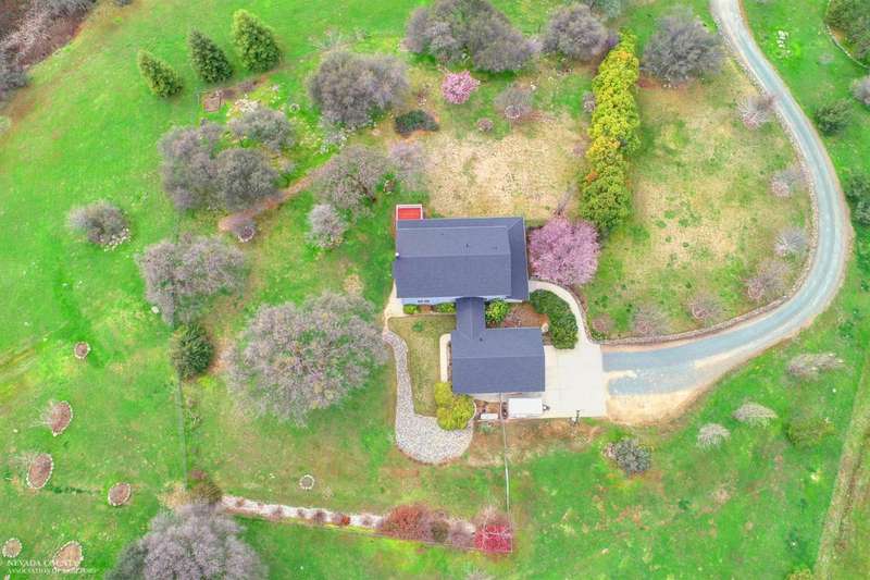 Gorgeous 10 acres with water galore - 100+ GPM well when drilled - Year round pond. 24 station irrigation system. NID also available - possible vineyard? Views of the beautiful trees & plants from virtually every window - reminiscent of a Monet painting with all the colors. A solar powered gate is at the entrance to this private oasis. This country property has privacy plus easy access to 49. Spectacular sunset views from the porch & many of the windows, including the master. Soaring ceilings and windows make this passive solar designed, energy efficient home special. The main floor master suite has a bay window & a sitting area overlooking beautiful scenery. There is access from the master to an enclosed porch - enjoy having morning coffee & relaxing in the evenings. There is an insulated room off the garage-perfect for an artist's studio, man/woman cave or extra storage.Sit in the tree swing & revel in the spectacular landscape colors.This is a very special home & property. Welcome!