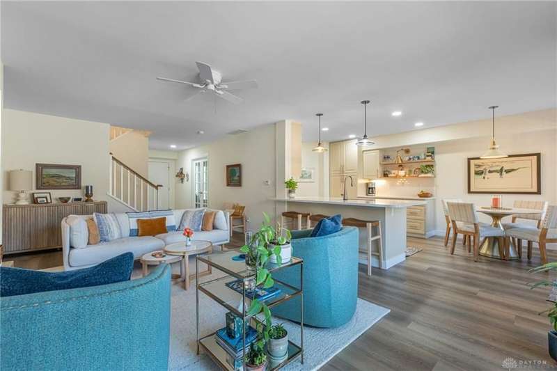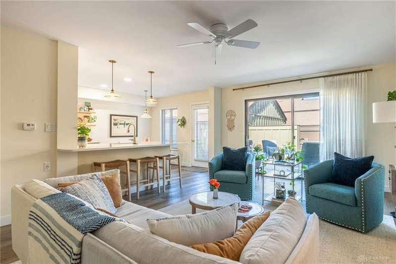 . New concrete patio with drainage system and flower bed/New patio gate (2025). 2 car garage.Front yard water drainage system installed (2024).Custom-built kitchen, painted cabinets with polished gold handles, white quartz countertops, stainless steel sink with a new garbage disposal, and touch-on/off faucet..Kitchen appliances and the washer/dryer were replaced (2021) remaining in excellent condition. The clothes washer was plumbed to drain away from any potential water damage, dryer was re-vented to outside instead of attic. A second refrigerator, located in the garage, is included with the sale..New 40-gallon water heater installed in 2021..New flooring throughout the entire condo , including wide plank wood laminate floors and carpeting in all bedrooms..Walls are painted in Neutral shades, one bedroom in blue. (2025).All inside doors replaced, as well as door trim and flooring baseboards..Primary bedroom closet was rebuilt with custom shelving and reconfigured for maximum storage. The secondary bedroom also features custom shelving..All new light fixtures throughout, including kitchen, primary bath, second bath, and half..New vanities and faucets for all bathrooms..New shower in primary, no step shower entry with corner bench. Adjacent towel rod installation is designed to support the weight of an individual..Custom built staircase railing .Custom built pecan wood open shelving in kitchen, along with a matching pecan wood hearth..Electric fireplace