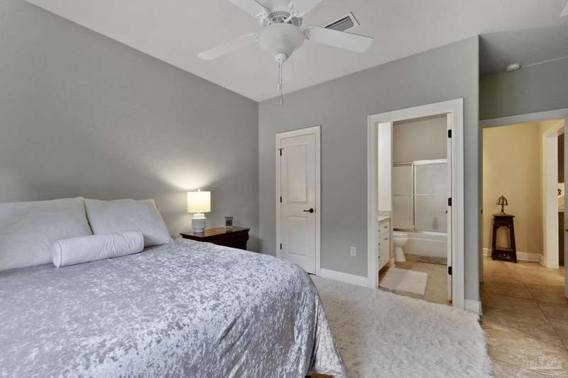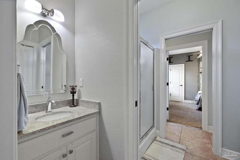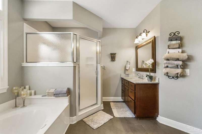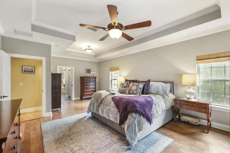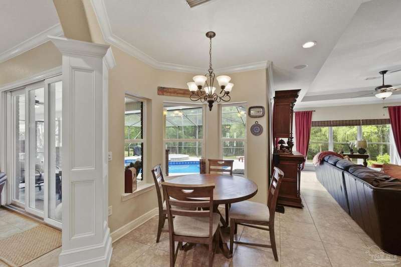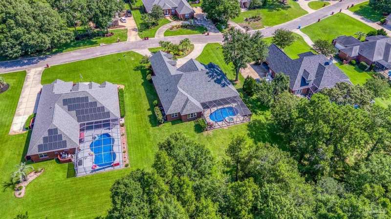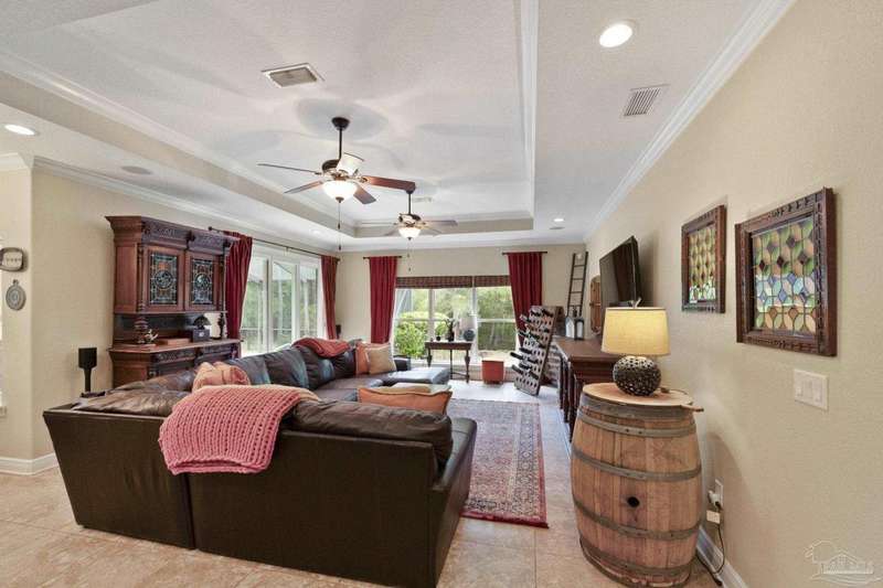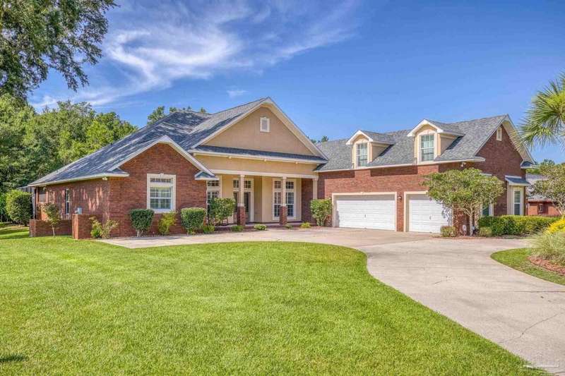 Brand new roof!! Step into elevated living in this custom-built pool home, ideally positioned on an oversized lot in one of the area's most distinguished golf course communities. A circular drive and charming front porch create a grand first impression, while inside, hardwood floors, custom tilework, and detailed millwork reflect thoughtful craftsmanship throughout. The kitchen is designed for both beauty and function, offering a large center island, double ovens, custom shelving, and generous bar seating-fantastic for casual dining or entertaining with ease. The main living area features a gas fireplace flanked by rich wood built-ins, creating a warm, sophisticated space. A separate study with its own built-ins provides the fantastic home office or quiet retreat. The luxurious primary suite offers a serene escape with tray ceilings, natural light, and a spa-style bath complete with a soaking tub, walk-in shower, and refined finishes. Outdoors, enjoy year-round relaxation with a screened-in pool and spa, a covered porch, and a newly updated pool bath accented by vibrant turquoise tile. With a brand new roof and recent 4-point inspection, this home is move-in ready and made for lasting enjoyment. Experience luxury, comfort, and community in one of the most desirable neighborhoods on the Gulf Coast.
