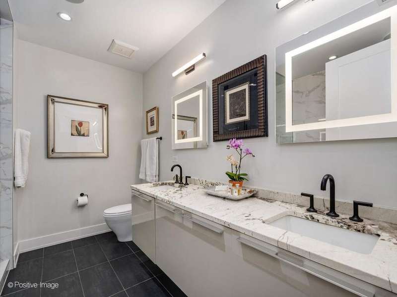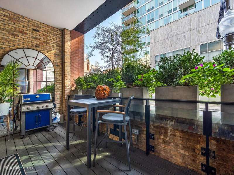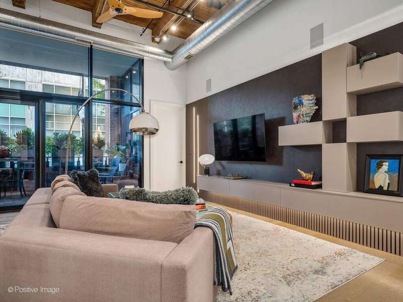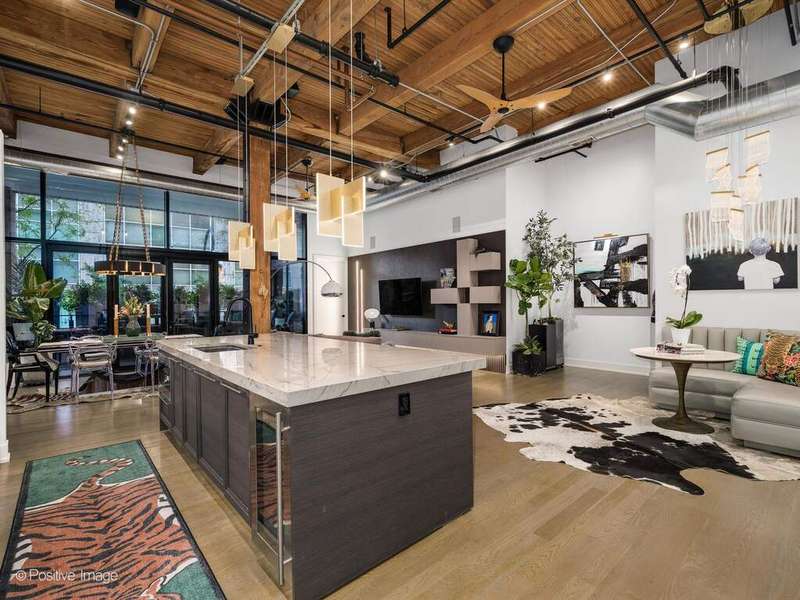 Experience elevated loft living at The Ronsley, one of River North's most sought-after luxury residences. This exceptional 3-bedroom, 3-bathroom home offers a perfect blend of industrial and modern feel, featuring soaring 15-foot timber ceilings, exposed brick, floor-to-ceiling windows, hardwood floors, custom lighting and automatic shades throughout. The open concept living and dining area is filled with natural light and anchored by a custom media wall, seamlessly flowing to a spacious private terrace. The chef's kitchen is outfitted with top-of-the-line Wolf appliances, a large island with polished quartz countertops, custom cabinetry, beverage refrigerator, pantry, and a custom designed built-in breakfast nook. A desirable split-bedroom floor plan offers convenience with each bedroom featuring a full en-suite bath. The luxurious primary suite includes oversized windows with blackout shades, a walk-in closet, and a spa-inspired bath with a steam shower, soaking tub, dual vanities, and updated mirrors. The generously sized second and third bedrooms each offer ample closet space and beautifully appointed en-suite baths. Additional features include a spacious laundry room with side-by-side washer/dryer, utility sink, and extensive cabinetry. The Ronsley is a full amenity building offering 24-hour door staff, fitness center, yoga room, resident lounge, an expansive landscaped courtyard with grilling stations, fire pit, and lounge seating and a private dog run. Ideally located near Montgomery Ward Park, the Chicago Riverwalk, Larrabee dog park, Health/Wellness Clubs such as East Bank Club and Bian, Target, groceries, top dining, nightlife, shopping, public transit and highway access. Price includes a premium deeded garage parking space with a lift accommodating two vehicles.