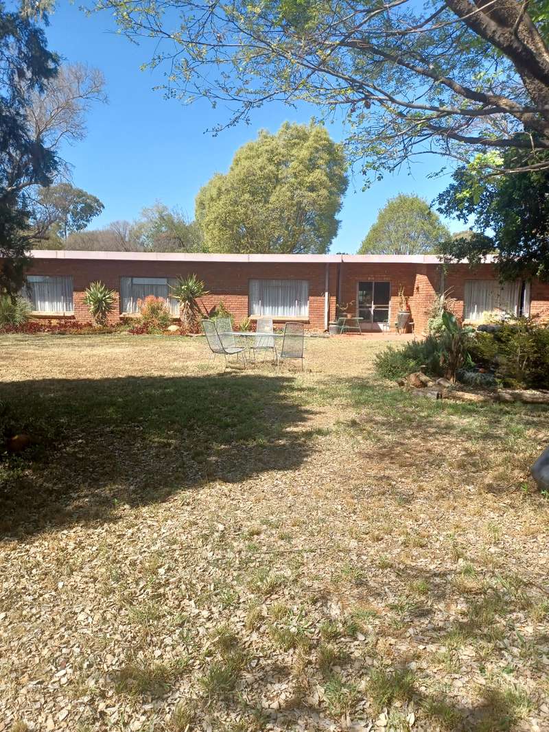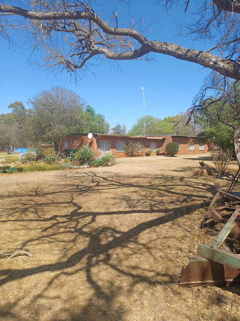 Stunning 28 Ha farm with arable land of approximately 12 Ha and 14 Ha bushveld / grazing land and 2 Ha living area. The living area consists of a 3-bedroom house with 1-bedroom flat (250 sqm), second 4-bedroom house of 250 sqm rentable, 150 sqm storeroom/garages and bird gages for 170 breading pairs, needs attention. Water is supplied from a strong borehole (+- 24000l/h) and another borehole not equipped. Electricity from Eskom 3 phase with 25 KVA. Boundary fencing on the farm is good and has been constructed to accommodate sheep / cattle farming. The main house consists of (1) 4 Bedrooms (2) 2 Bathroom (3) Open plan dining / lounge (4) Living area (5) Study (6) Kitchen with scullery and laundry (7) 1 Bedroom flat with own bathroom and living area. The second house consists of (1) 3 Bedrooms (2) 2 Bathrooms (3) Open plan Lounge / Dining room