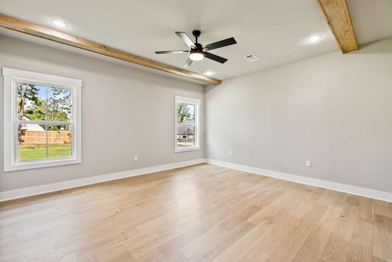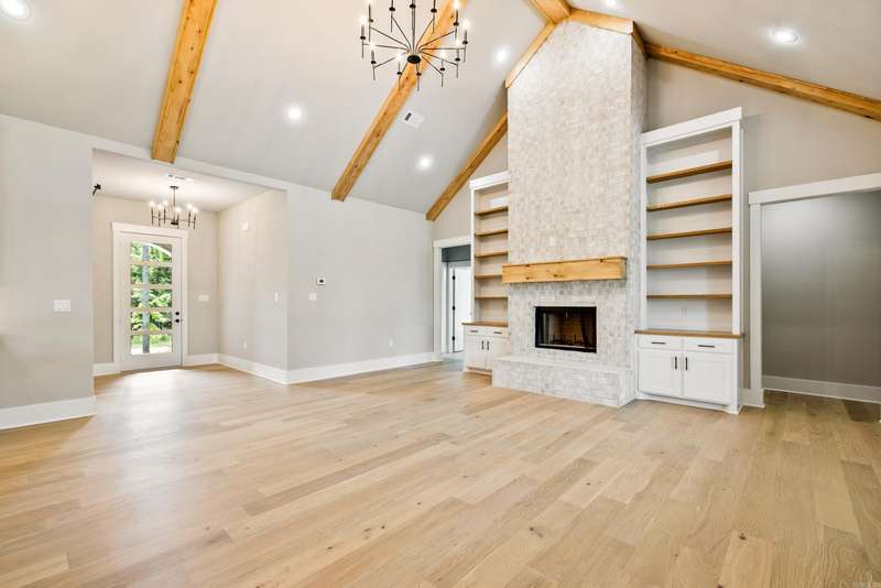 Stuning new construction home with lots of space and plenty of room on almost an acre. This home is a must see with lots of custom features. Open kitchen and living room with vaulted ceiling with beams. Kitchen offers a large island, custom cabinets, and walk in pantry. Living room has a wood burning brick fireplace with a separate office off the foyer. There is a large primary suite and walk in closet & bath. The backyard is beautiful and has lots of space.