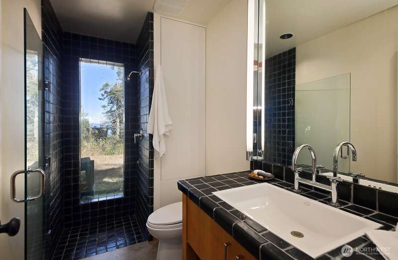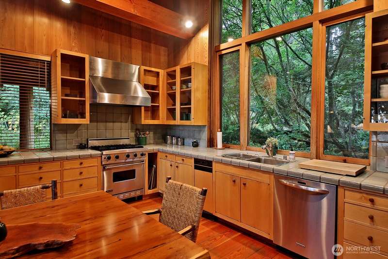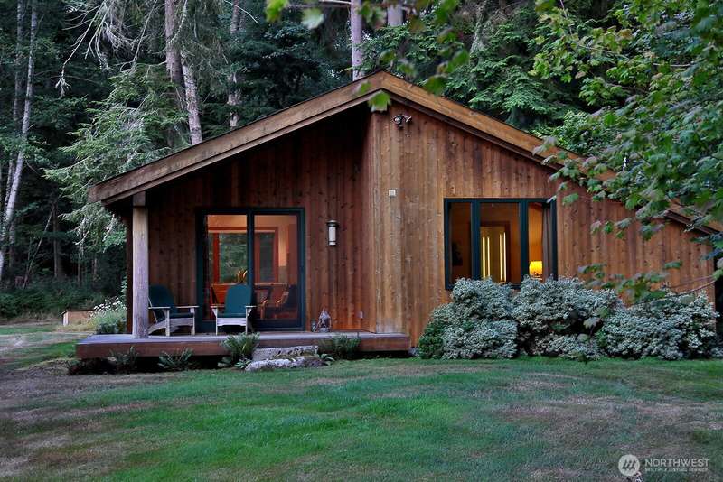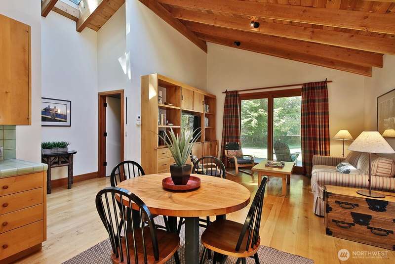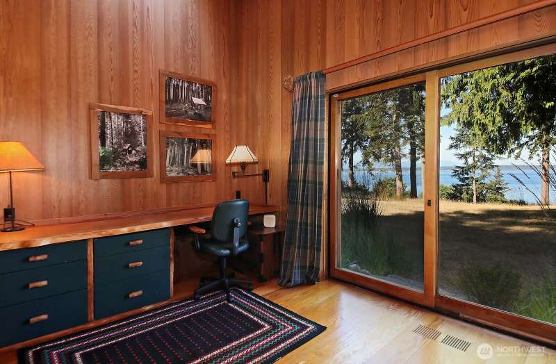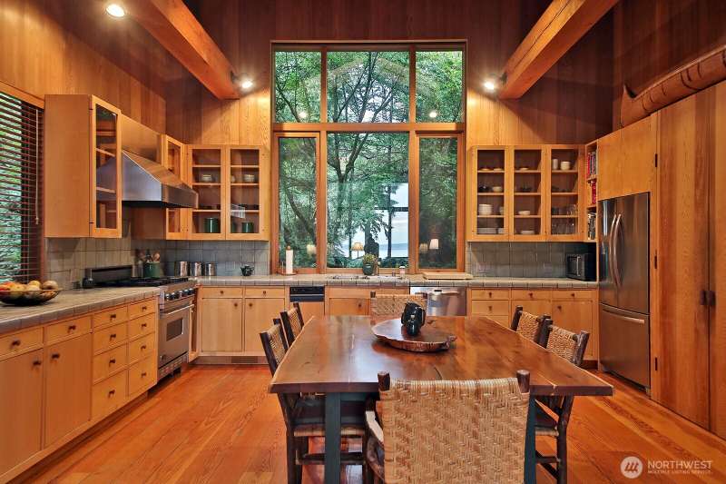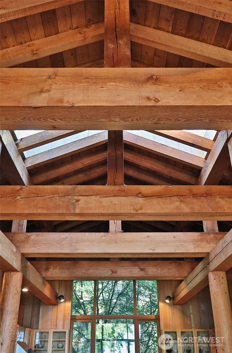Perched on 5+/- acres with 250+/- ft of westside high-bank wft & sandy beach below, this generational estate is a masterpiece of custom design. 3-fully contained homes-main home, view art studio w/attached apt, & guest/gate house all built by master craftsmen from old-growth Western red cedar. Massive beams, live-edge details, disappearing wood blinds framing sweeping vistas & storybook built-ins grace every room. Oak, old growth fir & concrete floors flow thru-out interiors, while kitchens boast Viking & premium stainless appliances + understated tiled baths. Main home features a dramatic floor-to ceiling stone fireplace, while stone paths weave thru naturally designed landscape & gardens to a waterside gazebo with water, power & firepit.