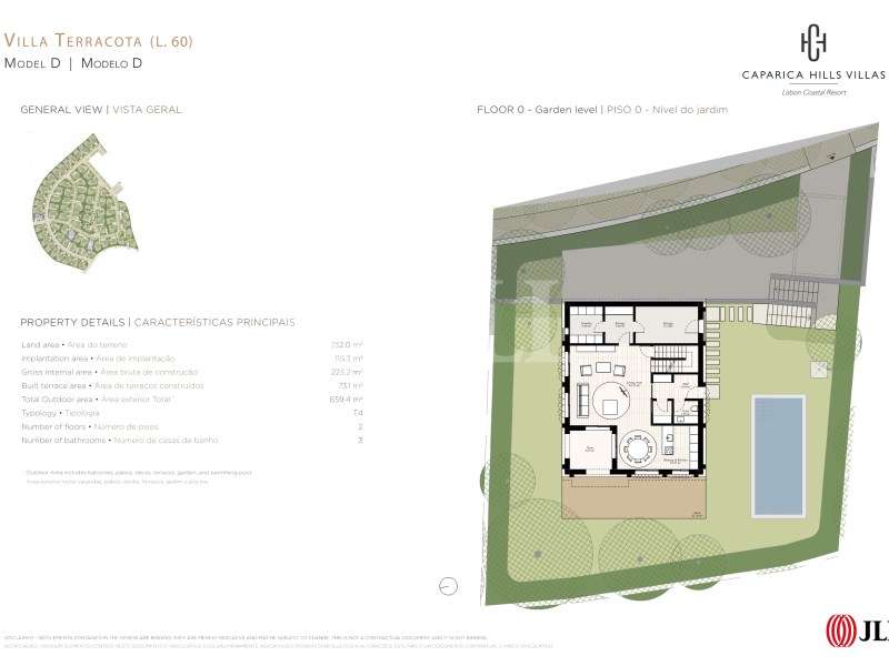 Moradia T4 nova com 223 m2 de área bruta de construção, jardim e piscina privativos, no Caparica Hills Villas, na Costa da Caparica. As unidades do Caparica Hills Villas oferecem garagem privativa, elevador, amplas zonas de lazer e espaços de arrumação. A construção incorpora elementos sustentáveis como painéis de madeira, coberturas ajardinadas e vegetação local, garantindo eficiência energética e conforto durante todo o ano. O empreendimento integra-se num resort completo que inclui o Hotel IHG Crowne Plaza Caparica Lisbon, instalações de bem-estar com spa, fitness club e estúdio de yoga, um campo de golfe de 9 buracos e uma zona comercial com 20 lojas boutique. Nos planos futuros estão previstos um centro desportivo e uma escola. A localização do Caparica Hills Villas combina tranquilidade e conveniência: a 5 minutos do mar, a 15 km do centro de Lisboa (15 minutos de carro) e próximo do aeroporto principal. Para compras diárias, o supermercado encontra-se nas imediações. O Caparica Hills Villas representa uma proposta de valor equilibrada para quem procura um investimento imobiliário ou residência numa das zonas de maior potencial de valorização da Grande Lisboa, conjugando proximidade à capital com a qualidade de vida junto ao mar. Categoria Energética: A #ref:90863
