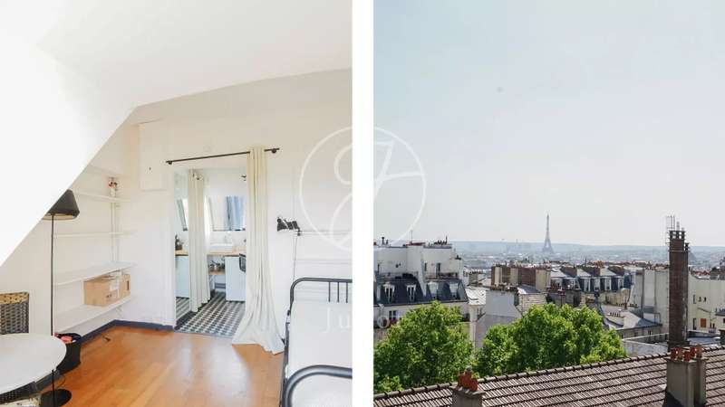 In the heart of the highly sought-after Abbesses district. This charming, light-filled studio, located on the sixth and top floor by staircase, offers a floor area of 14.25sqm (11.13sqm loi Carrez). Its ideal layout, with no loss of space, allows it to benefit from an unobstructed view of the south of Paris and the Eiffel Tower. The apartment features a fully-equipped kitchen and shower room with toilet. It also benefits from plenty of storage space. Ideal for pied-à-terre or rental investment. EXCLUSIVE.
