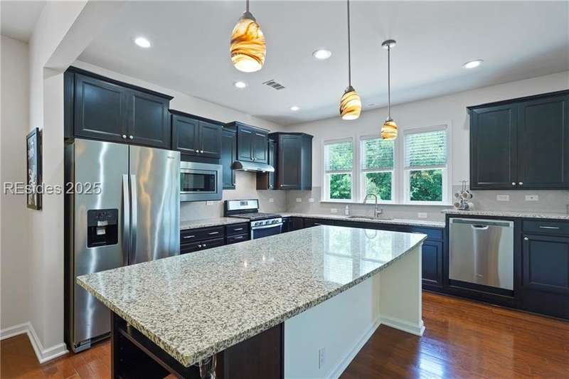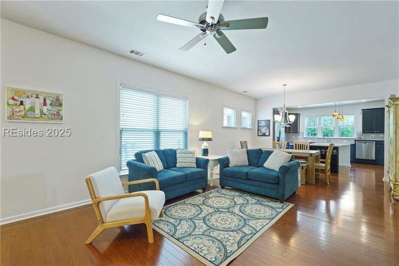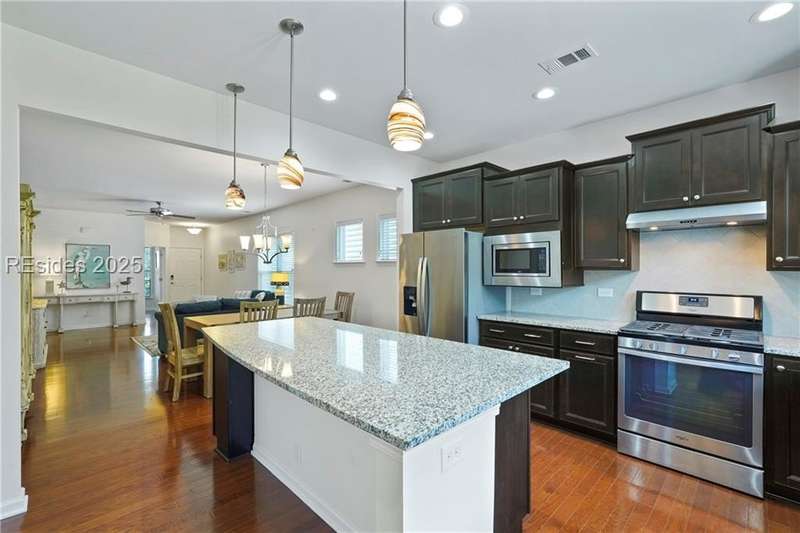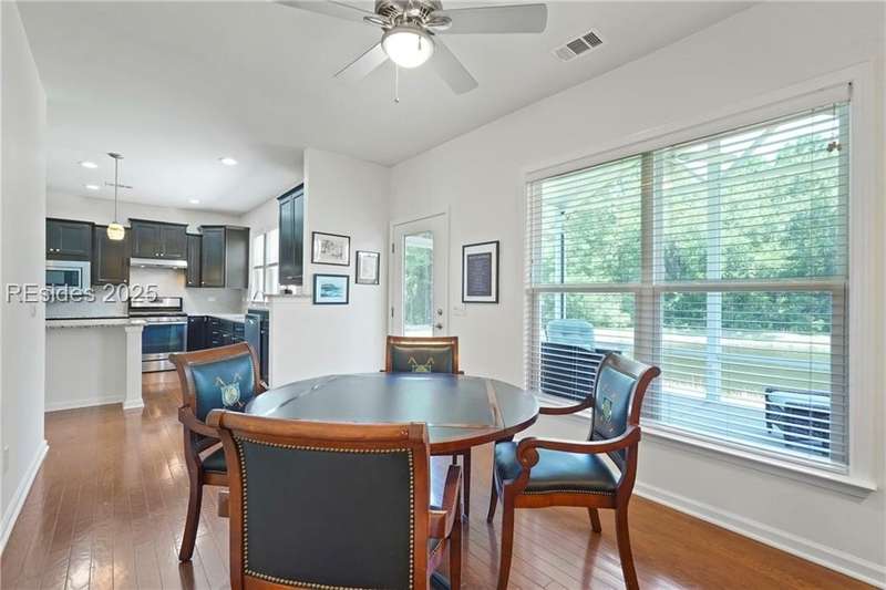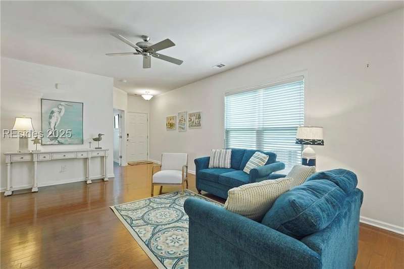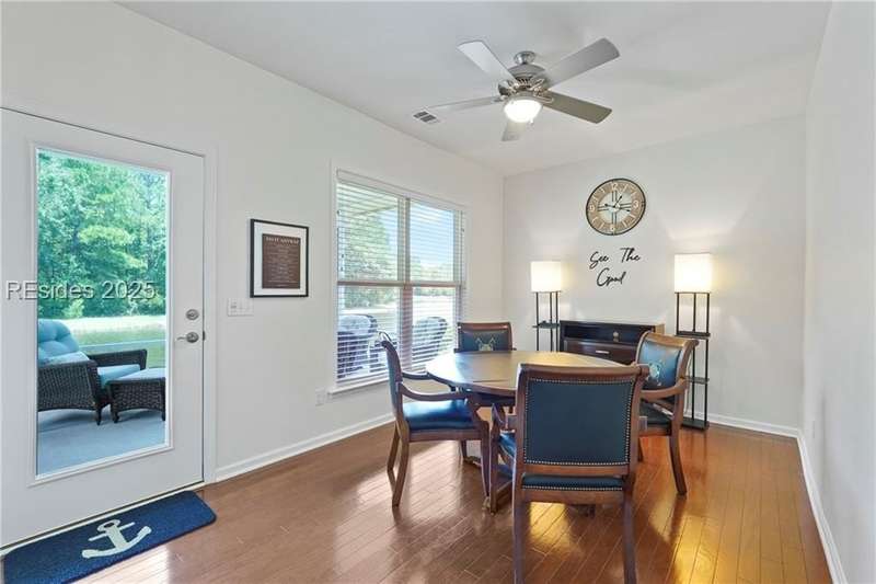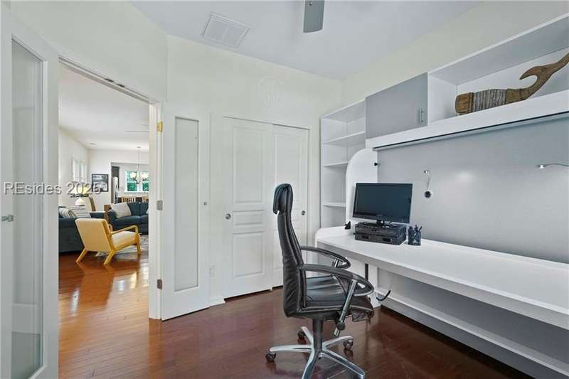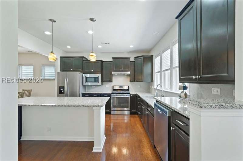 Enjoy the serene water to woods view from this meticulously maintained 2BD/2BA/Den Taft Street model that is conveniently located near the Tidewatch entrance into Sun City. The gourmet kitchen includes granite countertops, large kitchen island, roll out shelving, raised dishwasher, ss appliances & tile backsplash. Other upgrades include wood flooring throughout, den w/French doors & built in desk that converts into a Murphy bed, Carolina room, custom screen lanai & covered front porch. Enjoy the active lifestyle of Sun City and amenities including 6 pools, fitness centers, tennis & pickleball courts, golf & much more!