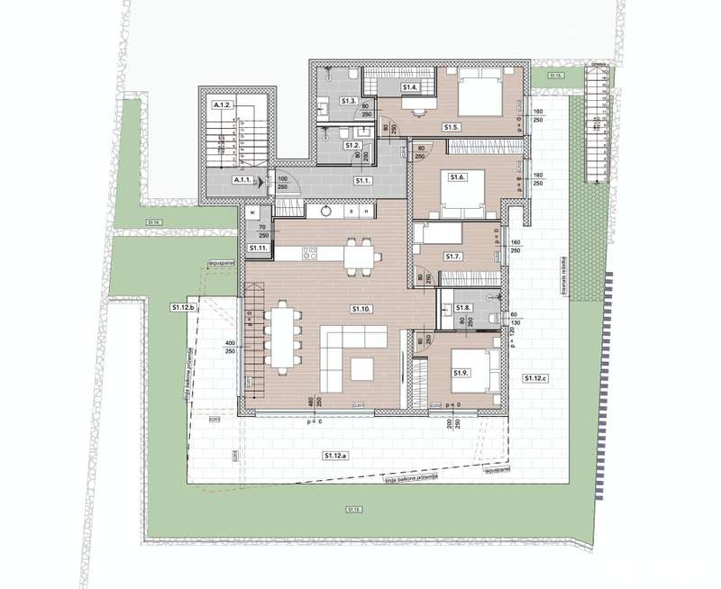 * Apartment S1 - Net usable area: 230 m2 (4 bedrooms + 3 bathrooms + 3 terraces + 240 m2 garden + garage parking + outdoor parking space)