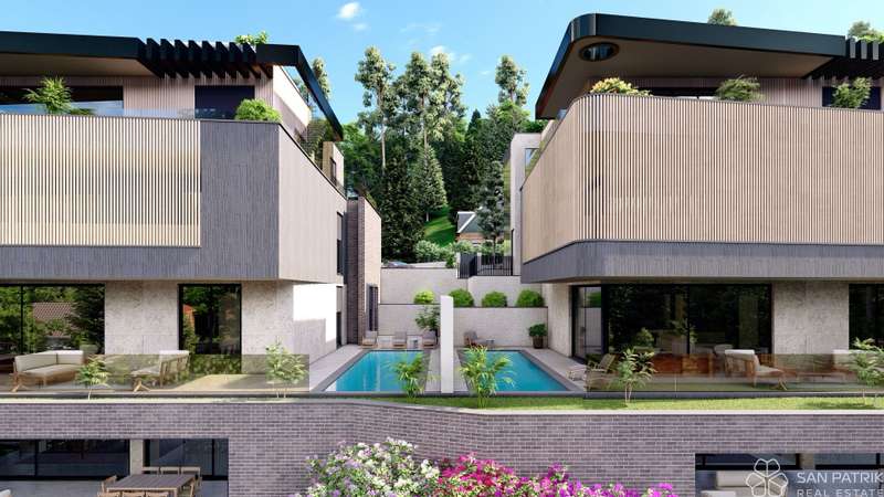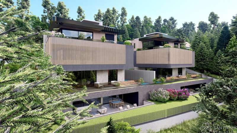 Each villa is designed to provide top-tier luxury through three spacious and elegantly equipped apartments, complemented by expansive terraces, private gardens, pools, and both garage and outdoor parking spaces.