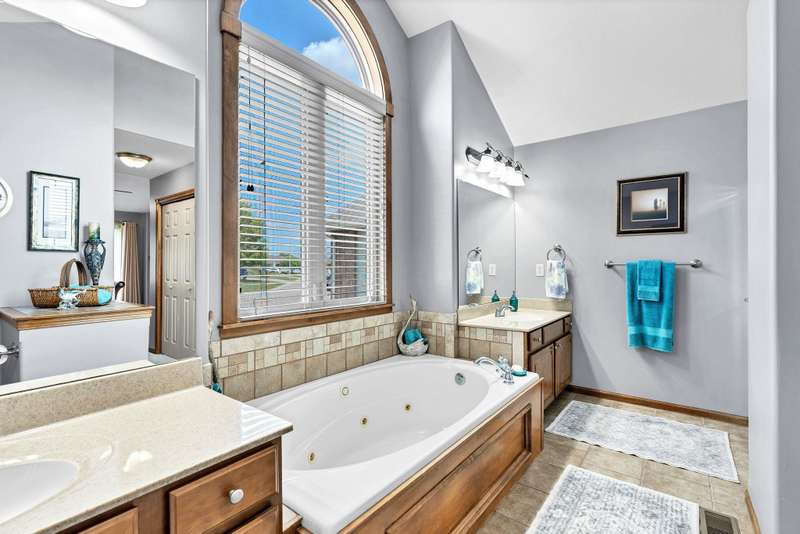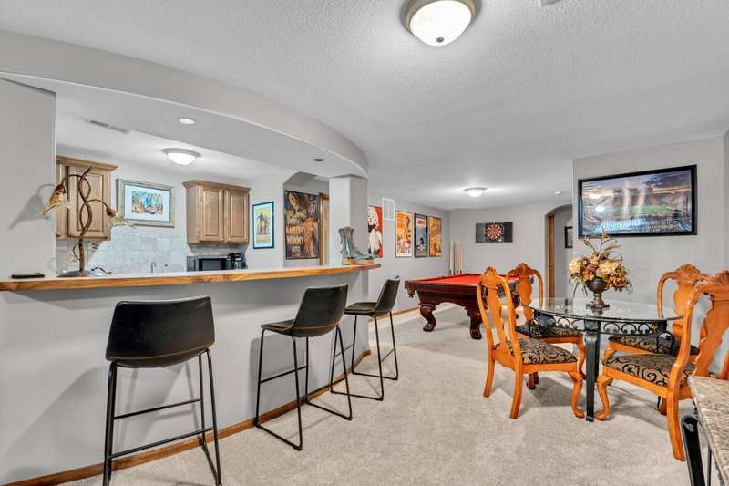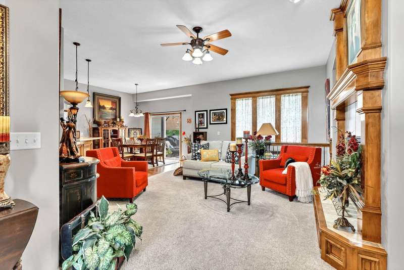 Pride of ownership shines throughout this meticulously maintained 4-bedroom, 3-bath home with a 3-car garage in the sought-after Tara Falls neighborhood. With over 2,500 sq. ft. of thoughtfully designed living space, this home offers a perfect blend of comfort, quality, and convenience. Inside, youll find an open-concept layout with high ceilings and a spacious main living area with beautiful hardwood finishes centered around a stately fireplace. The kitchen and dining spaces feature rich hardwood floors, ample cabinet space, stainless steel appliances, and both formal and informal dining areasideal for everyday living and entertaining. The main floor primary suite features a cathedral ceiling, a spacious closet and an ensuite bath with a jacuzzi tub, separate shower and dual vanity areas. Two additional bedrooms and a full hall bath as well as convenient laundry space just off the garage complete the main floor area. The finished basement expands your living space with a second fireplace, wet bar, large family room, fourth bedroom and a third full bath. The pool table in the rec room remains with the home, and there's also over 400 sq. ft. of unfinished storage space. The exterior features a spacious, privacy-fenced yard with mature trees and a pergolaperfect for outdoor gatherings. A separately fenced area offers space for a garden or pets, and the lawn stays green with a sprinkler system fed by an irrigation well. Move-in ready and well cared forschedule your showing today.