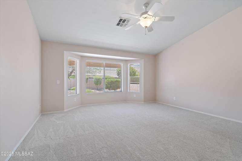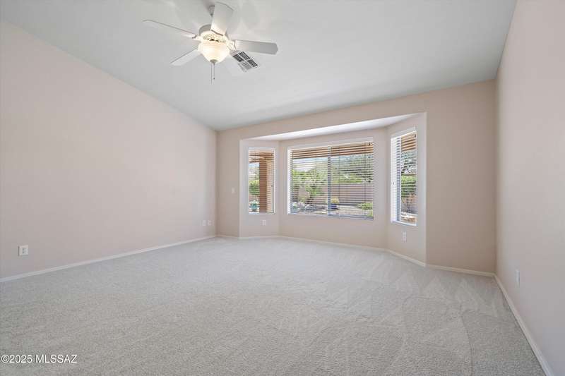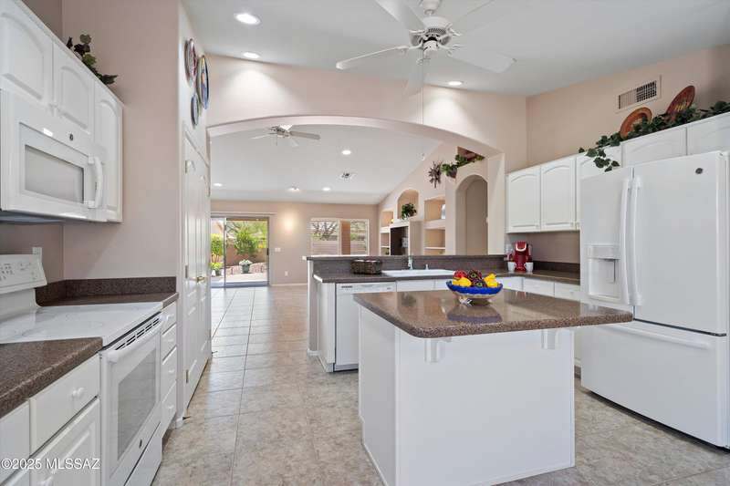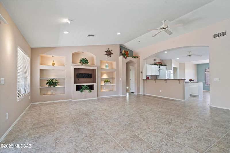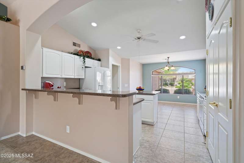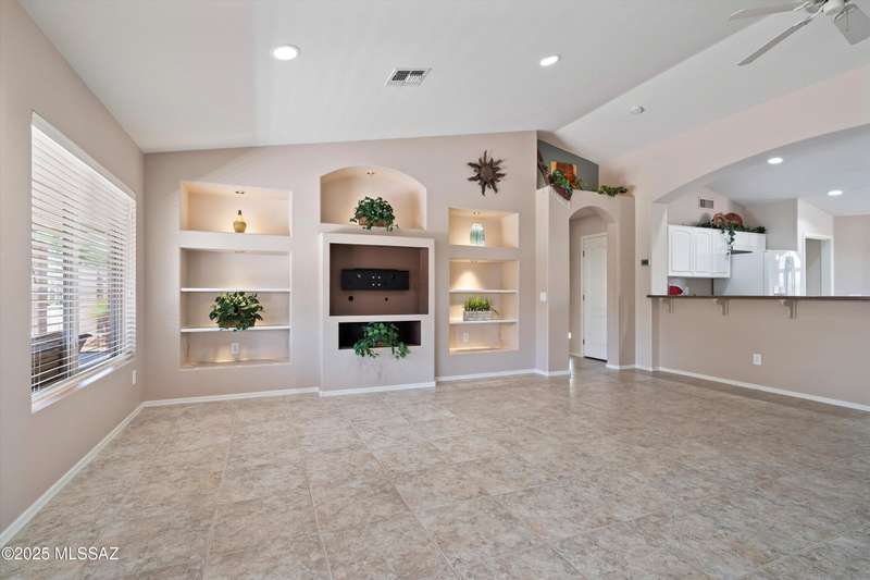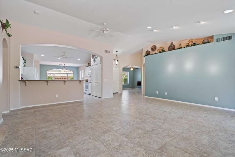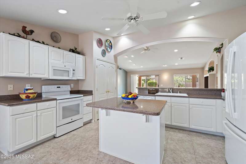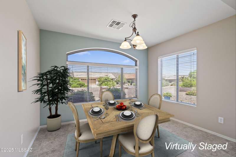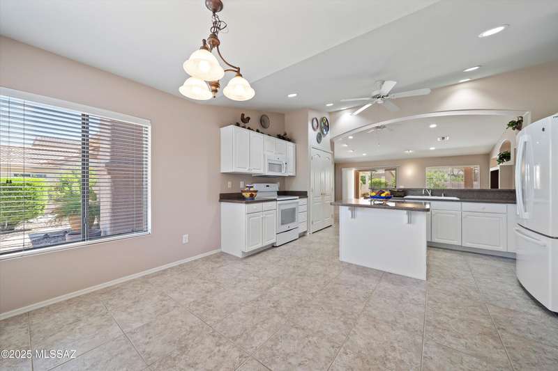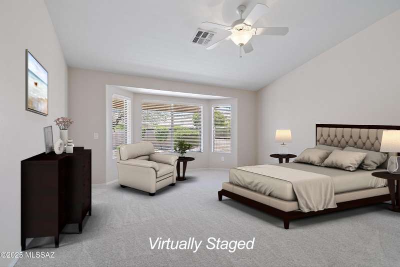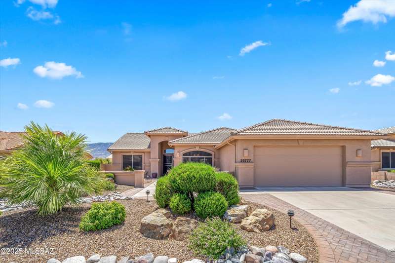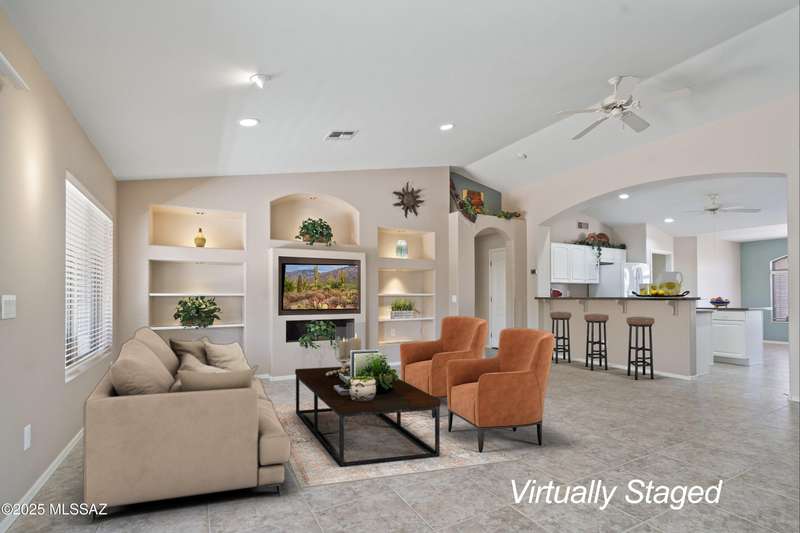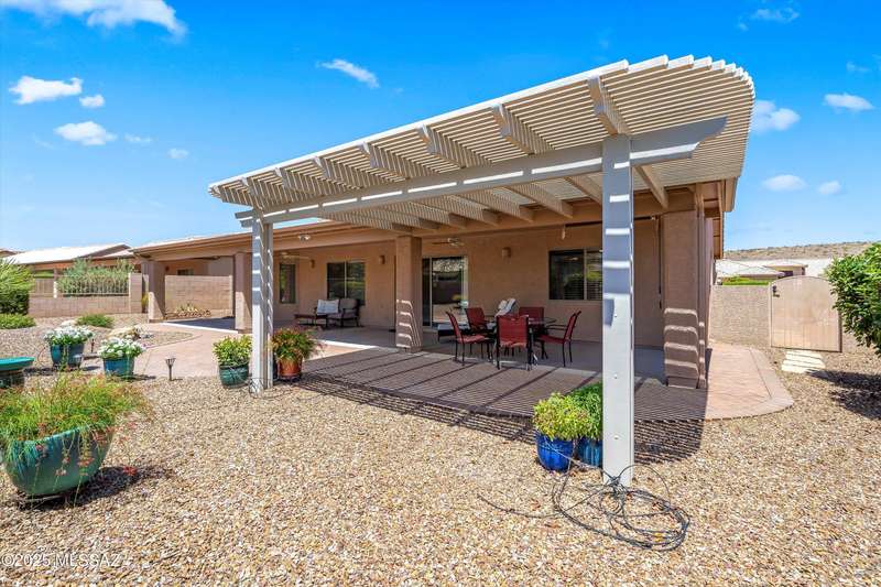 Highly sought after split bedroom Laredo model awaits. This single owner home has been meticulously maintained and is ready for new owners. The wall of windows and multiple can lights makes the great room, light and welcoming. The island kitchen includes a double door pantry, stonite counters, and white cabinetry and leads to the dining area that overlooks the front patio. An owner's retreat features new neutral carpeting, an en-suite with double vanity, step-in shower, and walk-in closet. Conveniently located Den, guest bedroom & bath completes this great home. The tile floors except in bedrooms and the extended garage are added benefits. Outside, the covered patio has been extended & has a Ramada providing additional shade and is the ideal spot for entertaining and enjoying the mountain